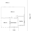 L'abitazione circondata da corte si distribuisce su due piani collegati da scala interna; al piano terra adibito principalmente a servizi con cantina ripostiglio e bagno mediante portico si accede all'ingresso dove si colloca la scala di collegamento al piano primo.