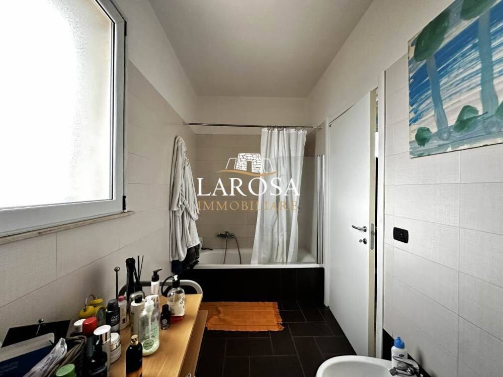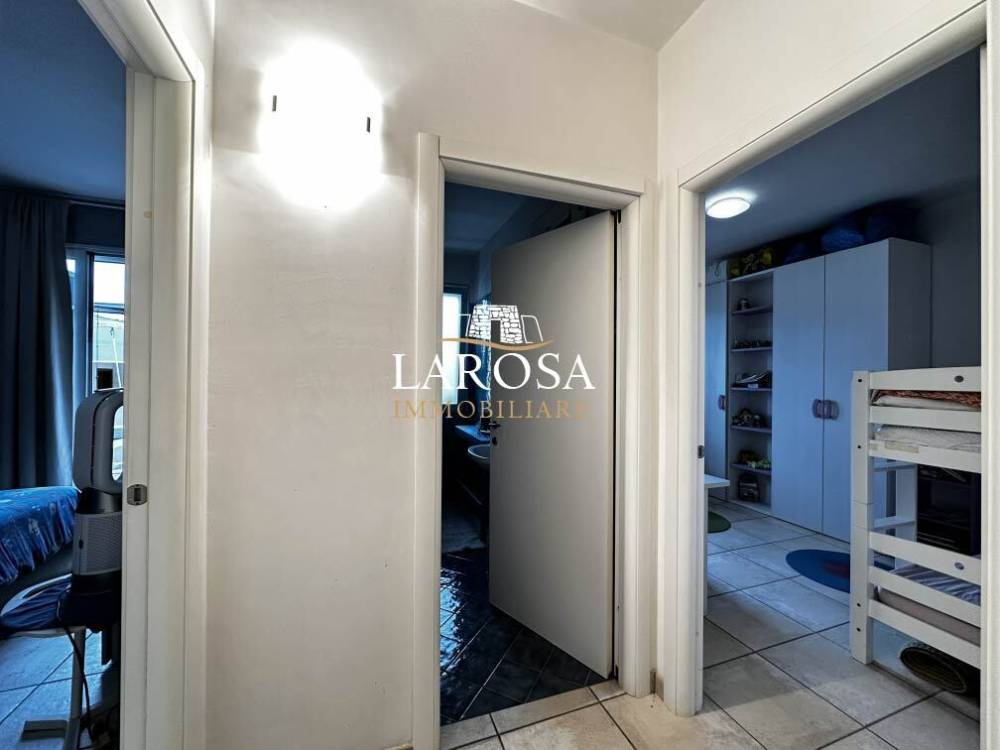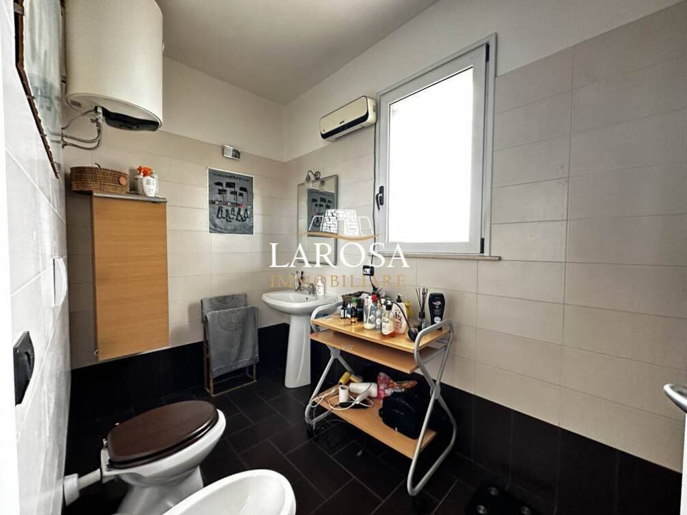 Esclusivo appartamento vista mare con terrazzo panoramico – San Foca In una delle posizioni più suggestive e ricercate di San Foca, a soli 50 metri dal mare e dalle splendide spiagge, proponiamo in vendita un raffinato appartamento al primo piano, di recente costruzione, caratterizzato da ampie superfici interne, generosi spazi esterni, terrazzo panoramico di esclusiva proprietà e posto auto privato. L’abitazione, di circa 134 mq, si distingue per una distribuzione degli ambienti funzionale ed elegante. L’ingresso conduce a un ampio e luminoso soggiorno, perfetto per accogliere e vivere momenti di convivialità, affiancato da una cucina separata con suggestiva vista mare, ideale per chi ama cucinare immerso in un contesto unico. La zona notte ospita due spaziose camere da letto e due bagni finemente rifiniti, comodamente suddivisi tra zona giorno e zona notte per garantire privacy e comfort. Elemento di grande valore è la veranda chiusa con ampie vetrate sul prospetto principale, che offre una vista mare mozzafiato e si presta ad essere vissuta in ogni stagione come zona relax, sala da pranzo o angolo lettura. L’immobile è ulteriormente valorizzato dalla presenza di balconi ampi e abitabili su tre lati, che assicurano eccellente luminosità naturale, ottima aerazione e un continuo dialogo tra spazi interni ed esterni. Dal balcone frontale, tramite scala privata, si accede all’area solare di esclusiva proprietà, un vero e proprio rifugio panoramico con vista aperta sul mare e sul litorale. Qui trova spazio una graziosa dependance in legno, perfetta per organizzare cene all’aperto, momenti di relax al tramonto o serate estive in compagnia, avvolti dalla brezza marina. La proprietà è completata da un posto auto privato e chiuso al piano terra, con accesso diretto alla scala che conduce all’appartamento, garantendo praticità e sicurezza. L’immobile si presenta in eccellenti condizioni, grazie alla recente costruzione e alla cura dei dettagli: infissi in alluminio con doppi vetri, zanzariere, ambienti ben rifiniti e pronti da abitare. Gli interni sono impreziositi da affreschi dipinti a mano dall’artista Yulia Solod, che conferiscono all’abitazione un carattere artistico unico e distintivo, rendendola una soluzione davvero esclusiva. Una proposta di assoluto pregio, ideale per chi desidera vivere il mare tutto l’anno, per chi è alla ricerca di una seconda casa elegante nel Salento, o per chi intende effettuare un investimento di valore in una delle località più richieste della costa adriatica salentina. San Foca è una rinomata località balneare della costa adriatica del Salento, nel comune di Melendugno, più volte insignita della Bandiera Blu per la qualità delle acque. Caratterizzata da spiagge di sabbia fine, calette e scogliere, offre un mare cristallino e un contesto ideale per il relax. Il centro è vivace e ben servito, con lungomare, porto turistico, ristoranti e negozi, ed è facilmente collegata a Lecce, Otranto e Torre dell’Orso. Località perfetta sia per le vacanze che per essere vissuta tutto l’anno, San Foca rappresenta anche un ottimo investimento immobiliare nel cuore del Salento. Larosa Immobiliare, con sede a San Foca, è il tuo partner ideale per acquistare o vendere casa nel Salento. Proponiamo immobili selezionati a pochi passi dal mare, perfetti sia come casa vacanza che come investimento sicuro. Vieni a trovarci in sede: tante nuove opportunità ti aspettano!