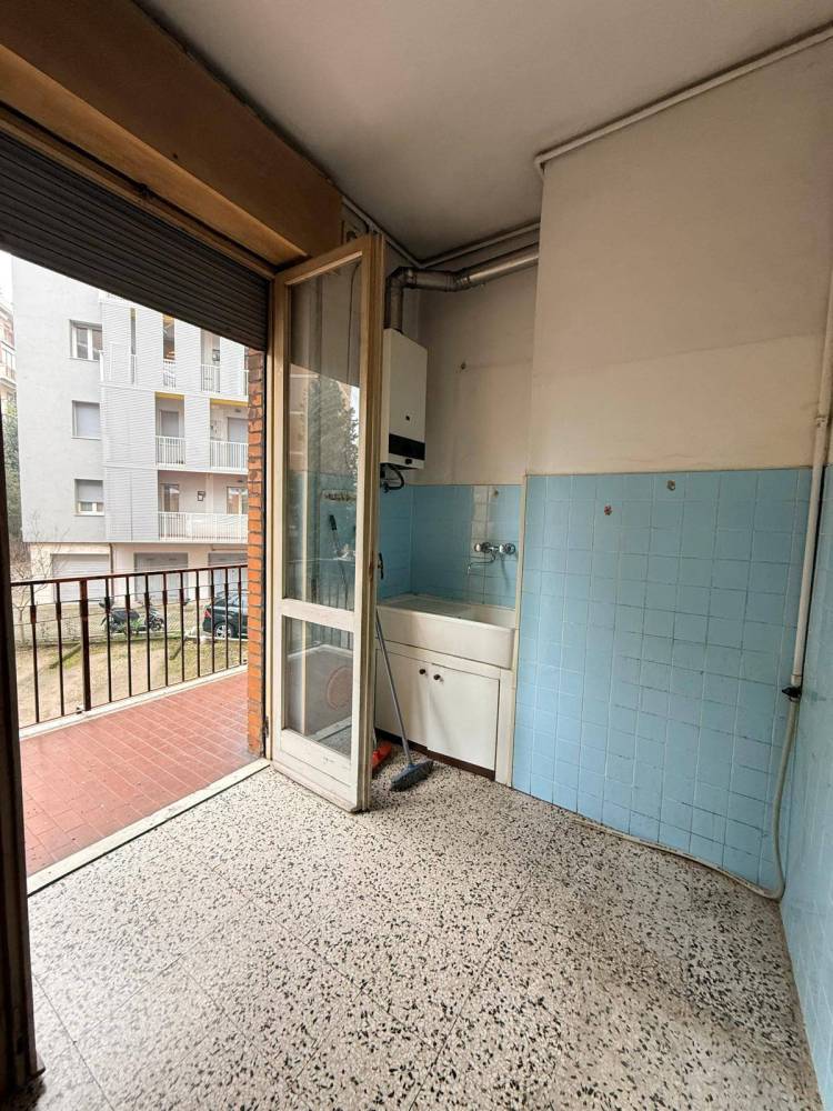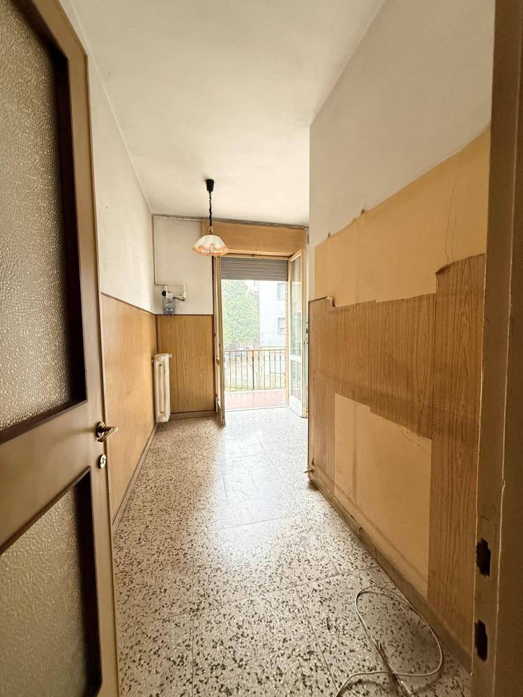 Appartamento da ristrutturare e personalizzare posto al piano primo di un piccolo contesto condominiale di sole 10 unità abitative. L'immobile ha un ampia zona giorno con balcone, cucina ricca di luce e con un bel balcone, due camere da letto matrimoniali e un bagno finestrato. Il doppio affaccio e la vicinanza del verde caratterizzano la posizione di questo appartamento. Accessoriato da cantina al piano terra dello stabile.