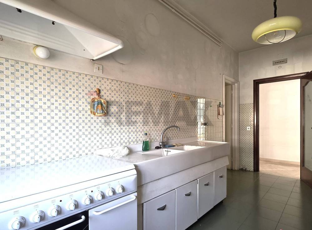 Materiali di finitura: Pavimentazione originale in tavelloni di marmo chiaro per tutto l'appartamento, mentre bagni e cucina sono rivestiti in ceramica, infissi esterni in legno da aggiornare