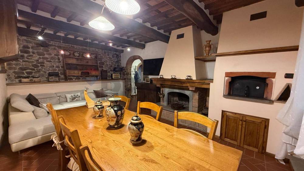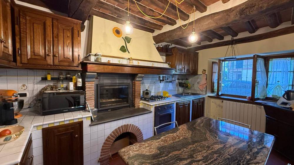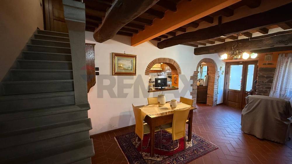 In vendita a Borgo a Mozzano, ed esattamente nella piacevolissima frazione di Valdottavo, terra di splendidi paesaggi collinari arricchiti da rigogliosi oliveti, si trova questa splendida casa semindipendente. È in ottimo stato di conservazione. Infatti, grazie ai lavori di ristrutturazione completati nei primi anni 2000, nell'abitazione si può dimorare sin da subito. Soluzione incastonata all'interno di una tipica corte del XVIII secolo, per di più affacciata di fronte a un'aia caratterizzata da un antico pozzo, a partire dagli esterni si presenta col tipico stile delle più accoglienti case toscane. La proprietà è composta da ben tre piani, con l'ultimo dedicato alle soffitte: nel complesso, soluzione immobiliare estesa su una superficie totale di ben 274 metri quadrati. Dopo aver osservato il decoro della facciata, formata da un bel gioco di pietra e mattoncini a facciavista, più le grate alle finestre del piano terra, oltrepassando il muretto che delimita la proprietà dalle altre e aprendo un bel portoncino a vetri si entra nella casa. Ad accogliere c'è il primo ambiente: un ingresso con sala da pranzo che dà un assaggio sulla raffinata e suggestiva scelta dell'arredamento, ovunque caratterizzato dal pregio dei vari materiali scelti. Perciò, chi ama il cosiddetto "stile rustico toscano" nella casa di Valdottavo trova dimora. Calde travi e travicelli a vista con solai in mattoni, altro "fil rouge" di tutta l'abitazione insieme ai pavimenti in cotto, non mancano nella zona dedicata alla cucina: ambiente che sorprende per la raffinatezza dei suoi arredi fatti su misura in legno muratura. Completa, il piacevole termocamino. Arricchisce la zona dedicata alla preparazione dei cibi, un pratico ripostiglio. Tornando nella zona d'ingresso, dove un passavivande la collega alla cucina, si nota il divertente arco in pietra. Basta oltrepassarlo per continuare a scoprire la zona giorno. Che prosegue con lelegante sala da bagno del piano e, poi, con la zona living. Quest'ultima è un accogliente ambiente dedicato alla convivialità della famiglia e dei suoi ospiti, una stanza ricca di calore aumentato dal bellissimo camino messo accanto al forno a legna. Al piano superiore si giunge percorrendo la scala introdotta dal già descritto arco, in pietra di Matraia, tipico materiale della zona: scelto per i gradini e altri elementi domestici. Giunti nella parte dedicata al riposo, la prima camera è in realtà una vera e propria suite matrimoniale: definizione resa dalle generose dimensioni nonché dall'attiguo bagno (condivisibile con la vicina camera e poi con le altre stanze). Le altre tre camere, di ampia metratura, possono accogliere letti e (perché no) trasformarsi anche in uno studio. Una seconda rampa di scale, conduce alle soffitte: ottima parte della casa, da adibire anche a zona dove poter sviluppare i propri hobby.