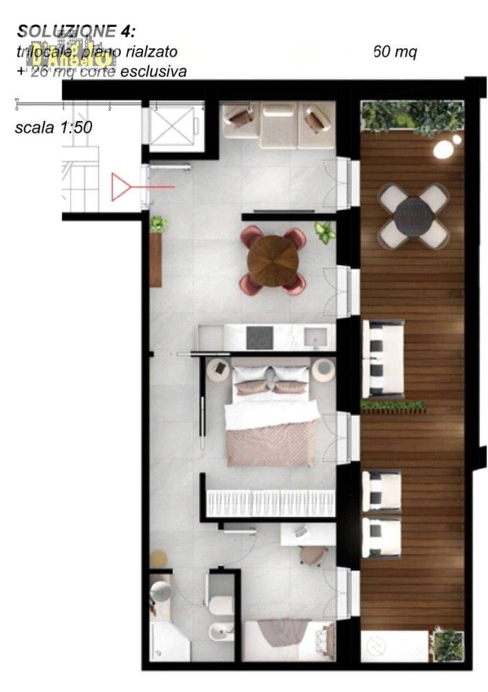 Completa la proprietà una corte esclusiva di circa 26 mq.