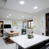 Dall’ingresso carrabile si viene accolti da ampie vetrate che donano luce naturale e un’immediata sensazione di modernità.