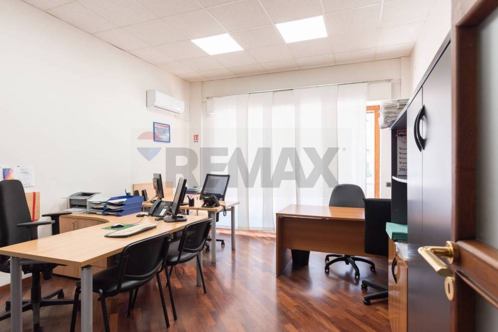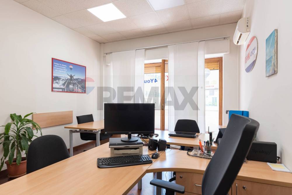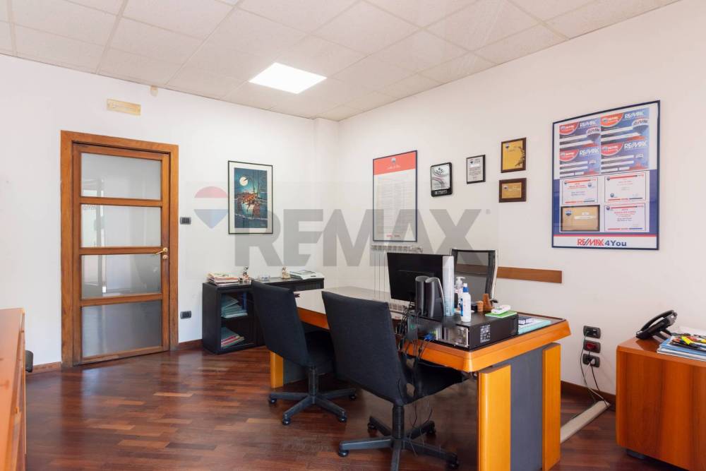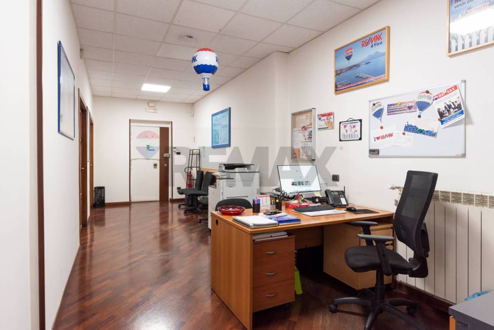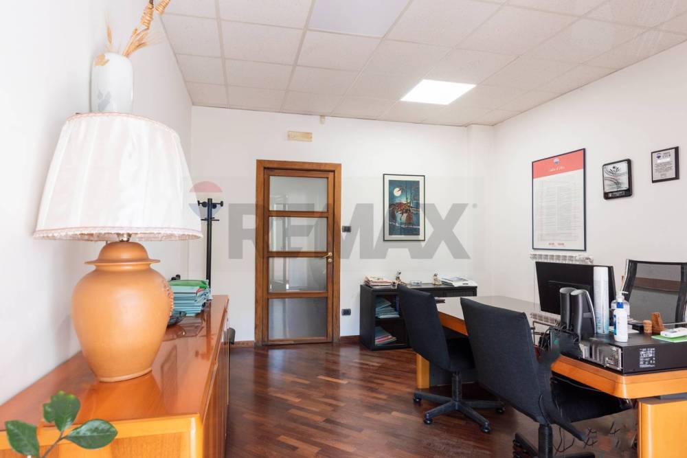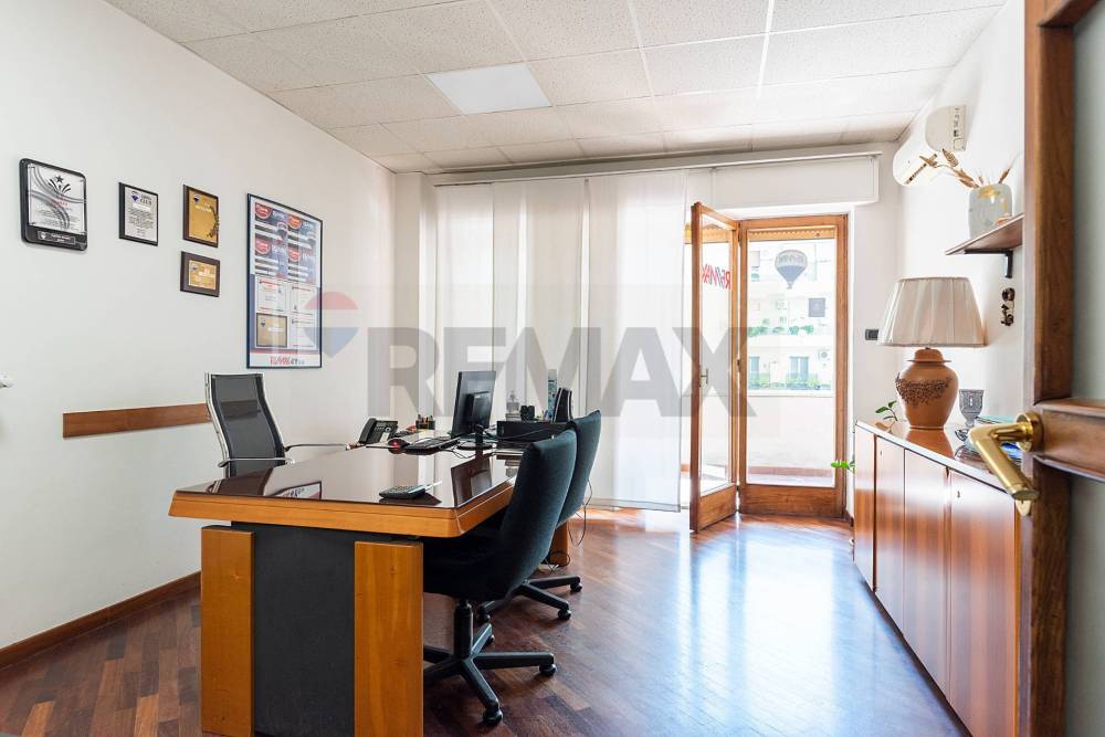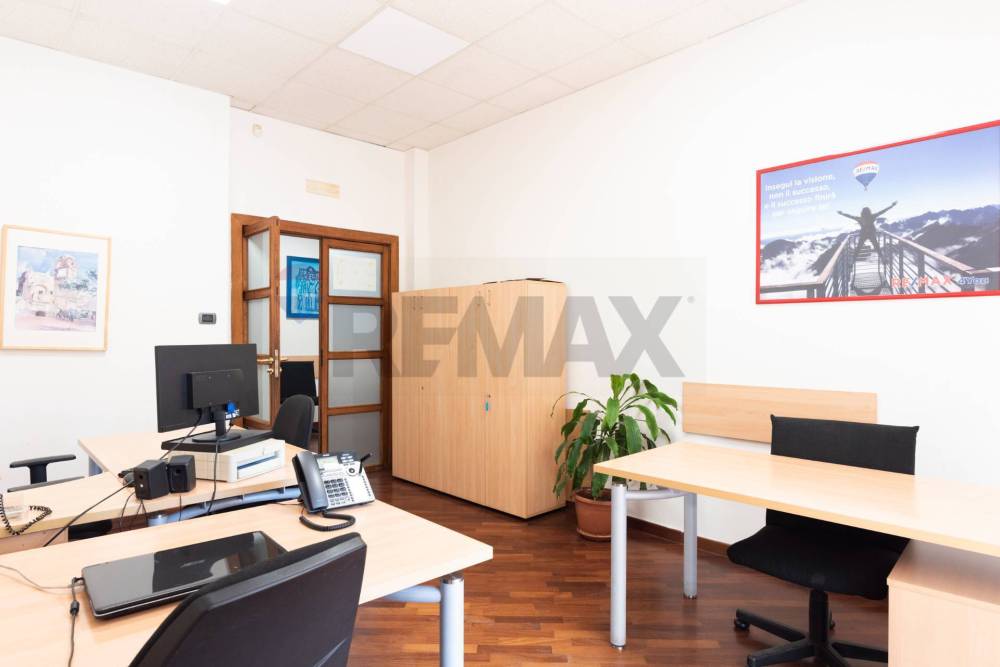 L'appartamento, nel recente passato locato ad uso ufficio, è attualmente composto da ingresso principale, grande corridoio con 4 ampie camere con sbocco diretto sulla balconata terrazzata esposta a Sud, un secondo corridoio con altre 2 camere con affaccio ad est ed a ovest, un grande salone con 3 aperture, 2 servizi, una cucina (da ripristinare, essendo stata eliminata), un ripostiglio ed un secondo ingresso in locale verandato.