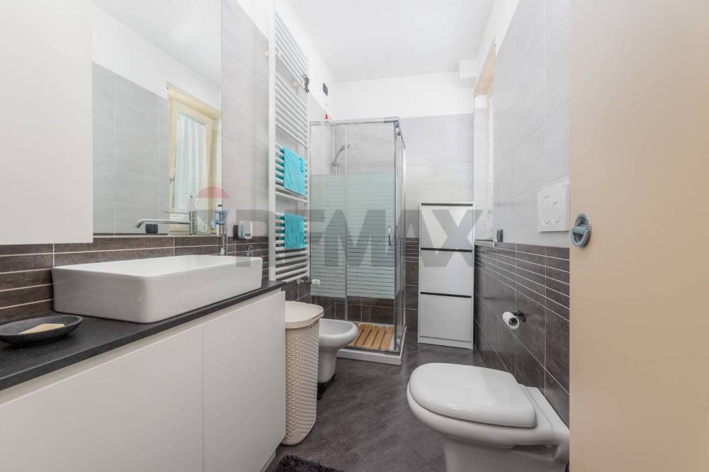 L'immobile si presenta in perfette condizioni, dettate dalla recente costruzione e da una manutenzione costante, parquet teck massello di medie dimensioni in tutta la casa ad eccezione de bagno dov'è stato posato un funzionate gress porcellanato in posa diagonale, portoncino blindato ed infissi in legno doppio vetro a taglio termico. l' impiantistica elettro idraulica è a norma mentre l'impianto di climatizzazione è installato sia nella zona giorno che nella zona notte oltre ad impianto anti intrusione e tapparelle motorizzate. Sul terrazzo sono state installate 3 tende da sole ad avvolgimento automatico. IL riscaldamento è centralizzato a gestione autonoma e sezionato per ambienti; ampia autorimessa al piano interrato ad 22.000 e vano cantina. Classe energetica B epi 56,68 l'immobile viene venduto parzialmente arredato. Libero a breve