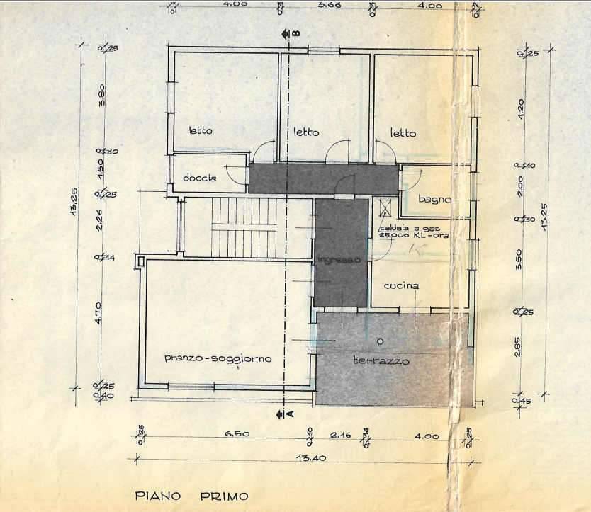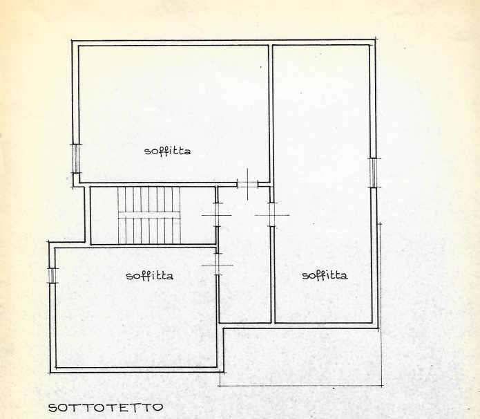 La parte abitativa presenta quindi i due box al Piano Terra accessibili dalla strada e dal giardino interno, il vano scale ampio che conduce al Piano Primo ove troviamo l'appartamento e procedendo la soffitta all'ultimo livello (vedi planimetrie allegate).