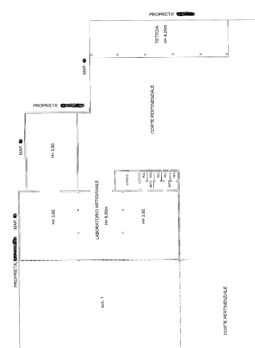Capannone ad uso artigianale composto da vano principale, magazzino, servizi e ripostigli piccolo ufficio tettoia e corte libero.