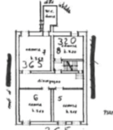 Trattasi di un porzione di casa composta da piano terra con ingresso, sala, cucina, tinello, ripostiglio, wc, cantina e legnaia esterna, piccola corte esterna esclusiva oltre a resede a comune; al piano primo dal pianerottolo troviamo un disimpegno, quattro camere e wc doccia; al secondo piano da un vano ad uso soffitta e camera soffittata, il tutto collegato da scala interna.