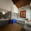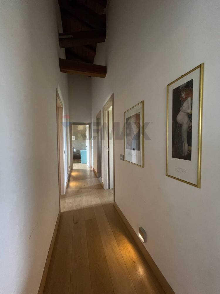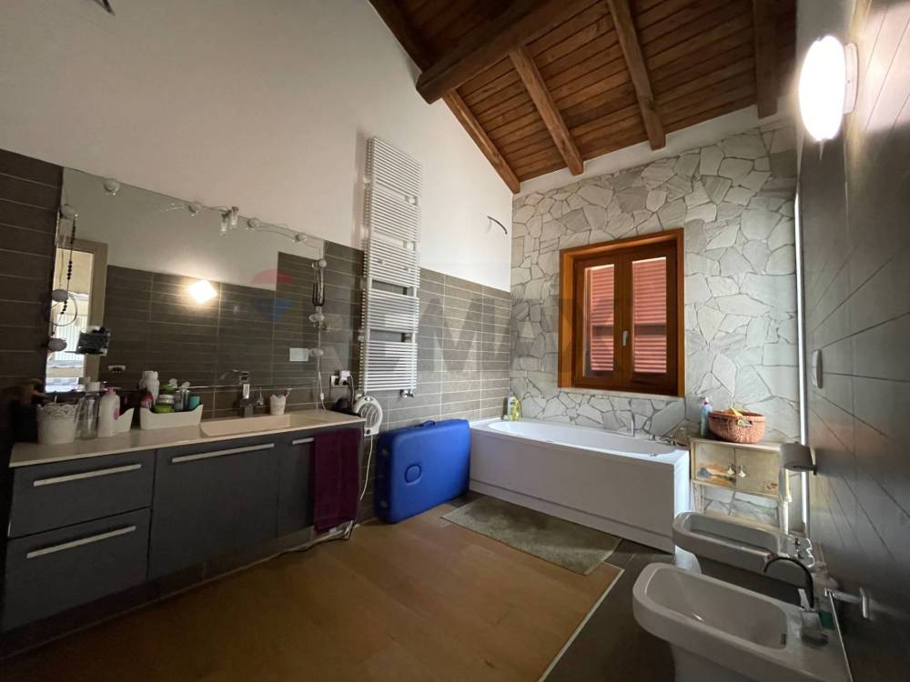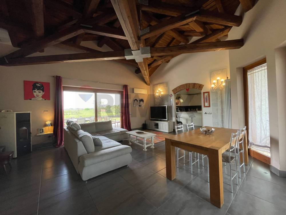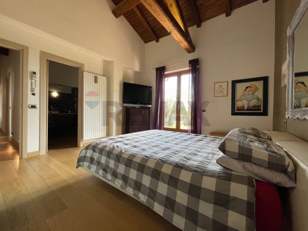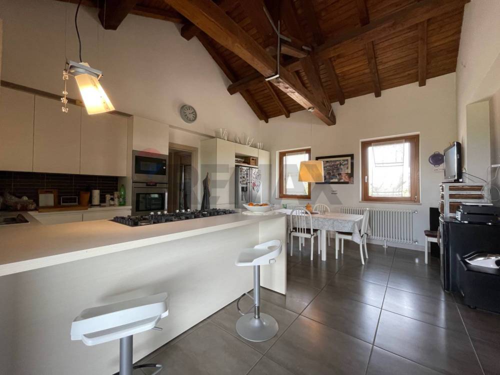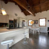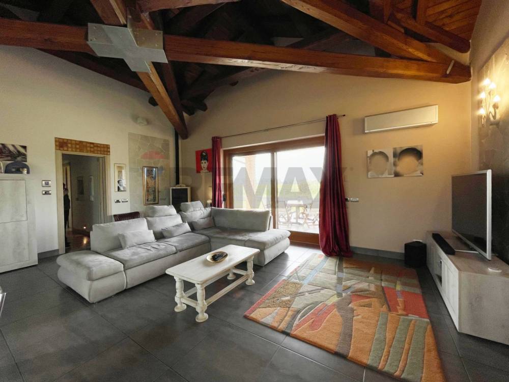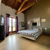 Al suo interno, l'ampia zona giorno è il cuore della casa: un grande soggiorno accogliente e luminoso, con ampie finestre che si affacciano sul paesaggio circostante, permettendo alla luce naturale di invadere gli spazi. Il soffitto è impreziosito da travi in legno di castagno, che conferiscono un'atmosfera calda e rustica, ma allo stesso tempo sofisticata. La cucina, separata ma comunicante con la zona living, è spaziosa e ben organizzata, con finiture moderne che la rendono estremamente funzionale, ma sempre con un tocco di charme.