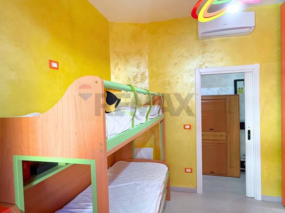 Proseguendo nella zona notte, un lungo disimpegno conduce al bagno, che, come la casa, è completamente ristrutturato, e poi ad una cameretta spaziosa, ideale per due bimbi o come studio ed infine ad unamabile camera da letto, dotata di balconcino con affaccio su via Goffredo Mameli.