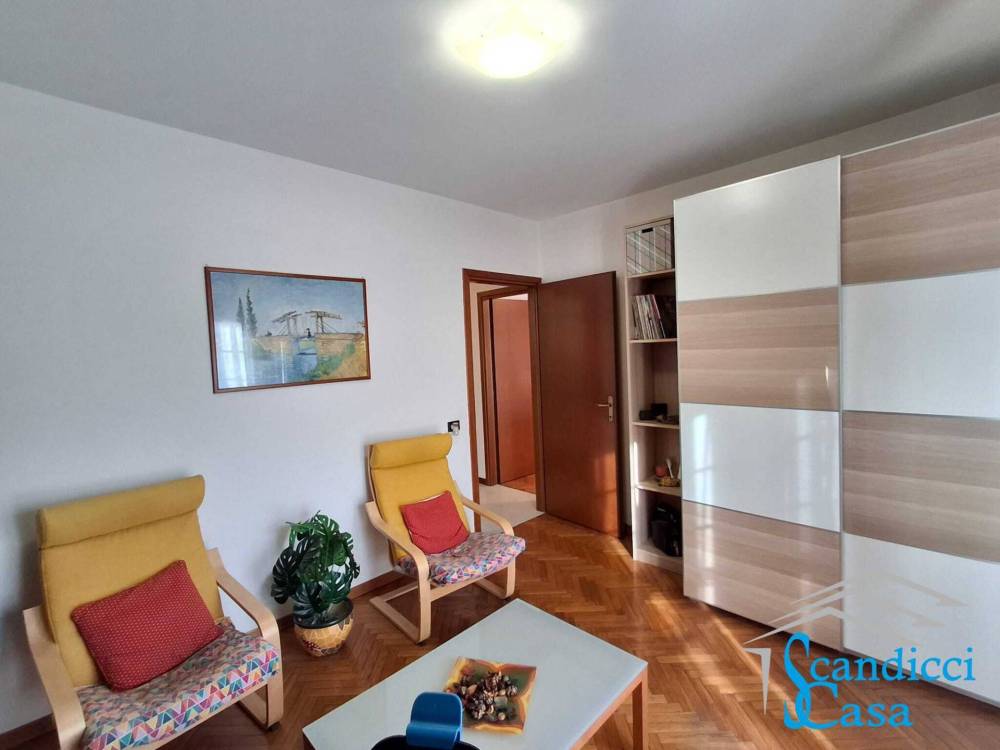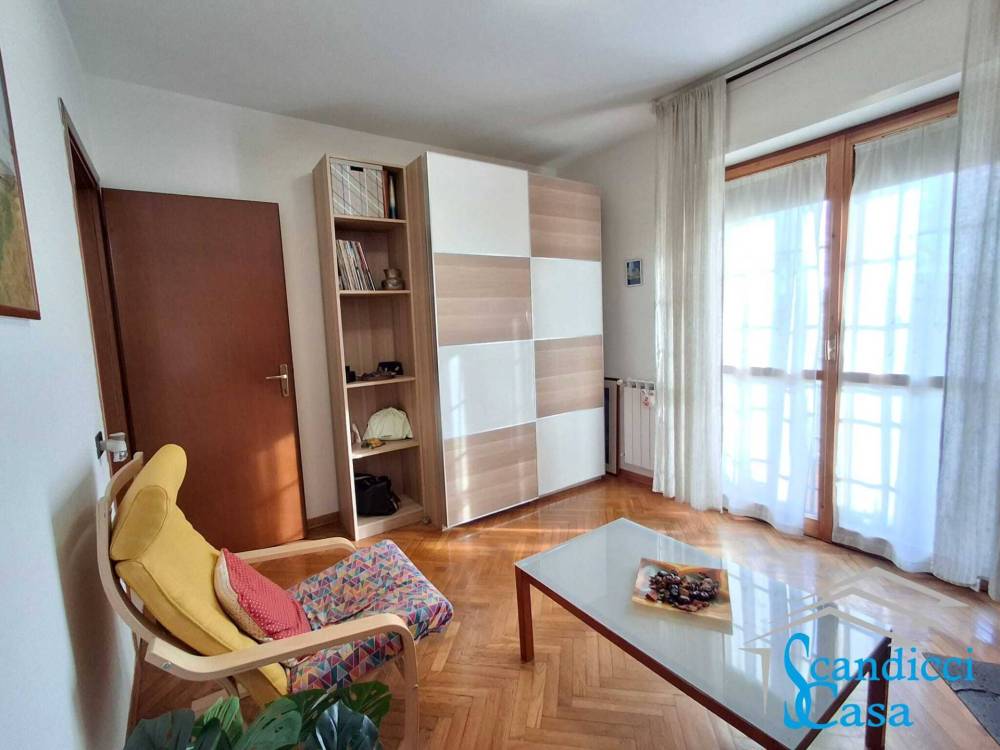 Entrando troviamo la zona giorno in open space con angolo cottura ed un terrazzino adibito a zona lavanderia, proseguendo lungo il corridoio ci troviamo nella zona notte composta da due camere da letto matrimoniali entrambe con accesso al resede di 25 mq, una camera singola e doppi servizi finestrati appena ristrutturati.