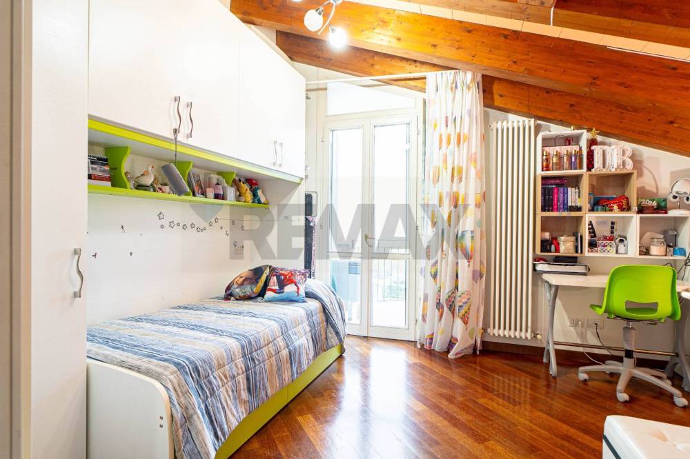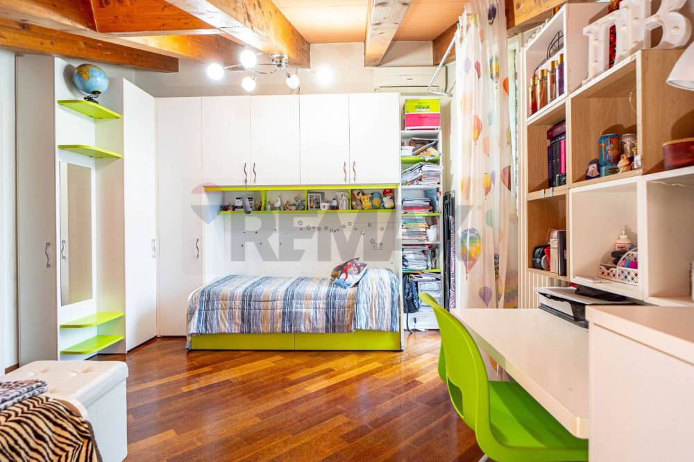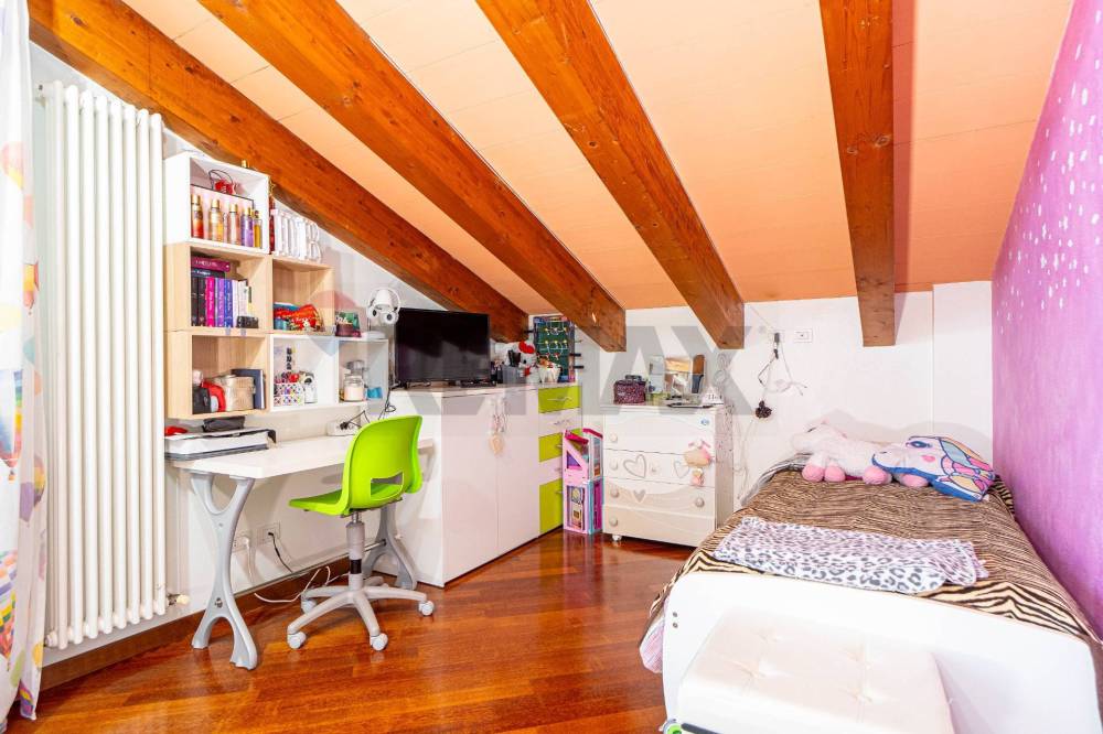 Salendo al piano superiore, mansardato e ben sfruttabile, si sviluppa la zona notte con due camere da letto, di cui una con balcone, e un secondo bagno che serve le due camere.