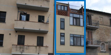 fa parte di un edificio da cielo terra su tre piani, oltre a sottotetto, l'unità è composta al piano terra, da portone di accesso e scala; al piano primo da due camere, cucina, soggiorno, wc e terrazzo; al piano secondo da tre camere, bagno e terrazzo; al piano terzo da soffitta.