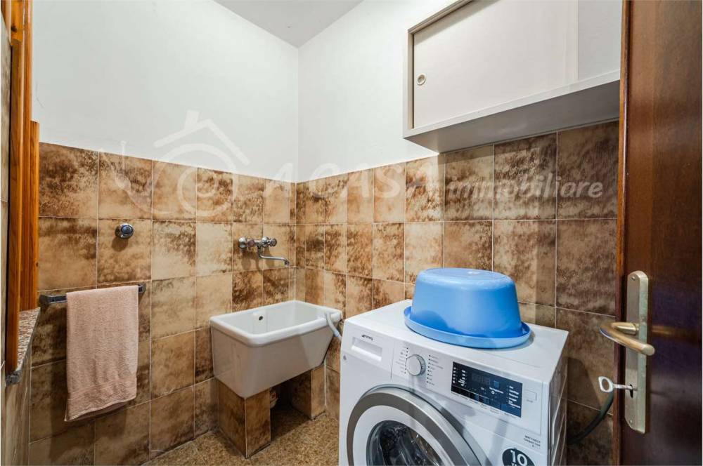 Al piano terra, ambienti pratici e funzionali: due stanze, un bagno e una comoda lavanderia con angolo cucina.