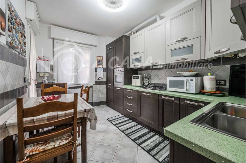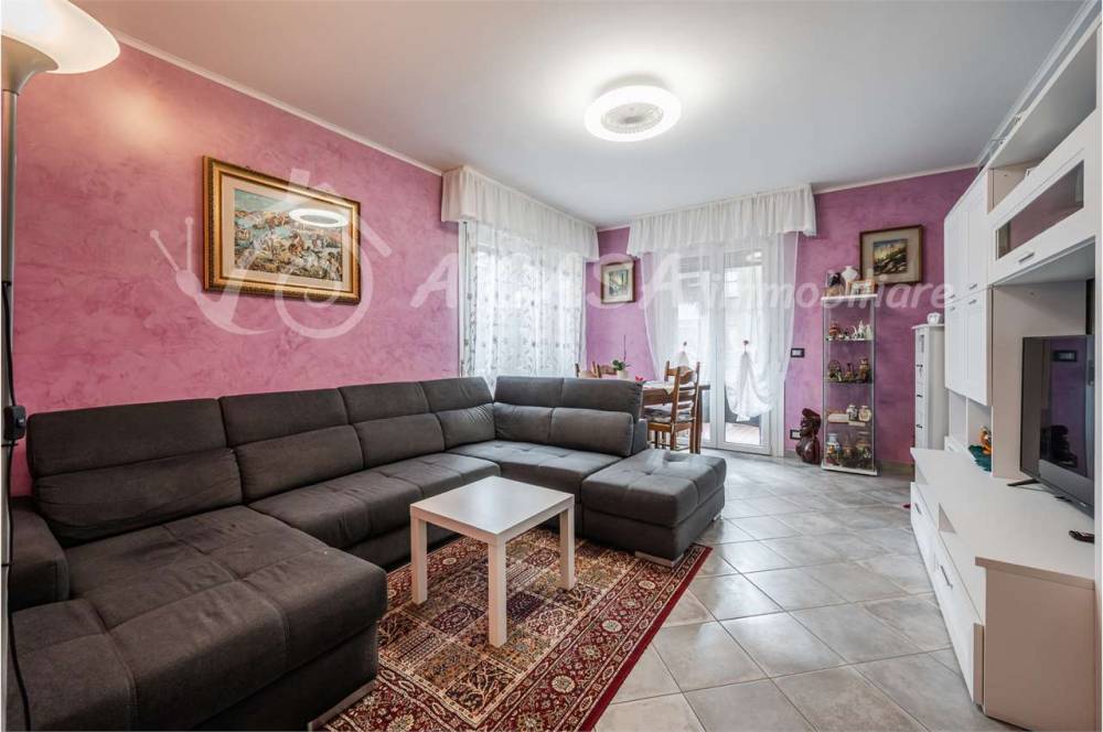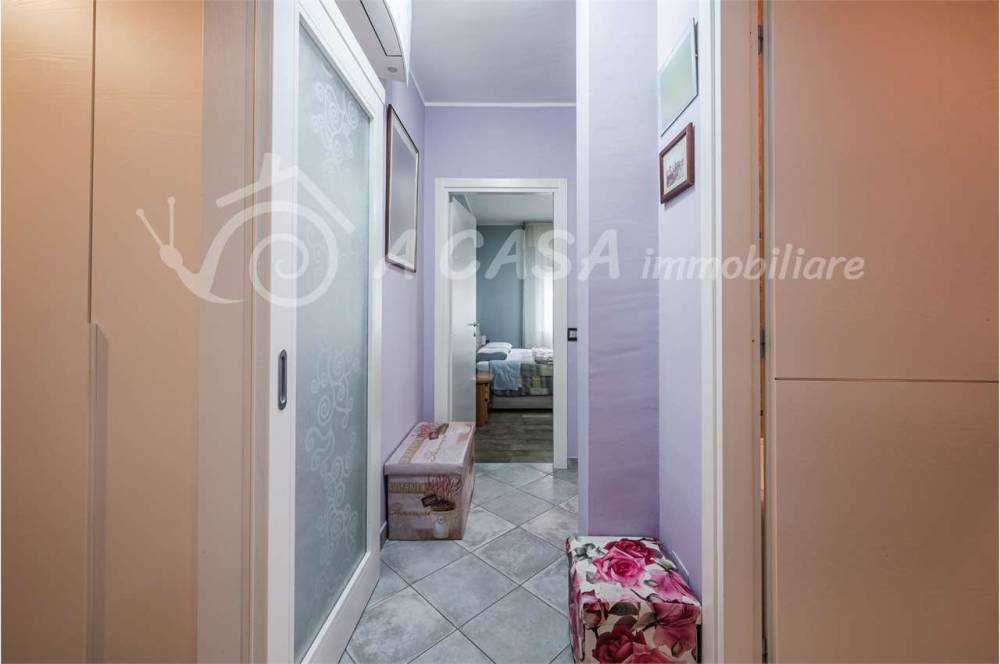 La casa è composta da ingresso, ampio soggiorno con accesso al balcone e spaziosa cucina abitabile. Tramite disimpegno si accede alla zona notte dove troviamo 2 comode camere matrimoniali, 1 cameretta e 2 bagni di cui uno con vasca e uno con box doccia.