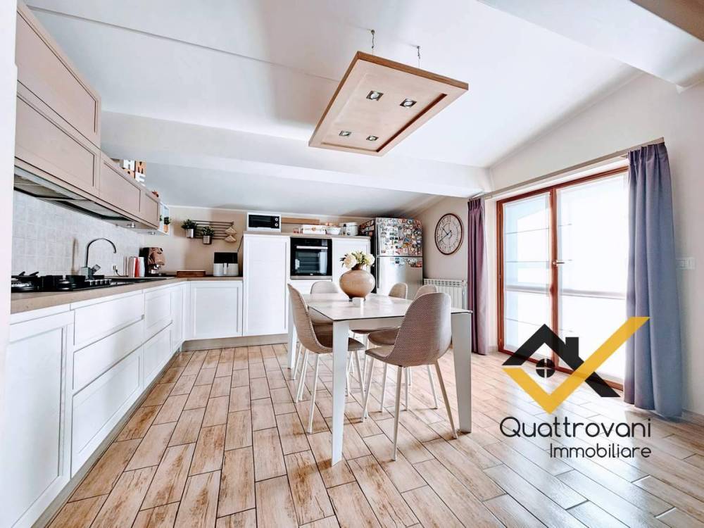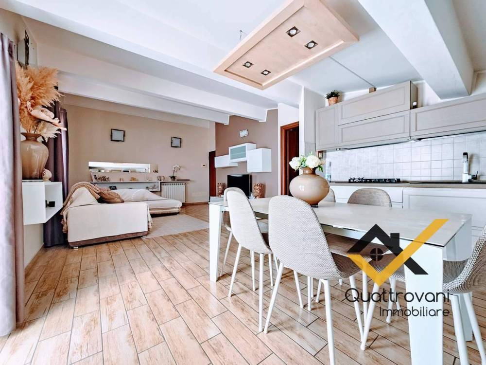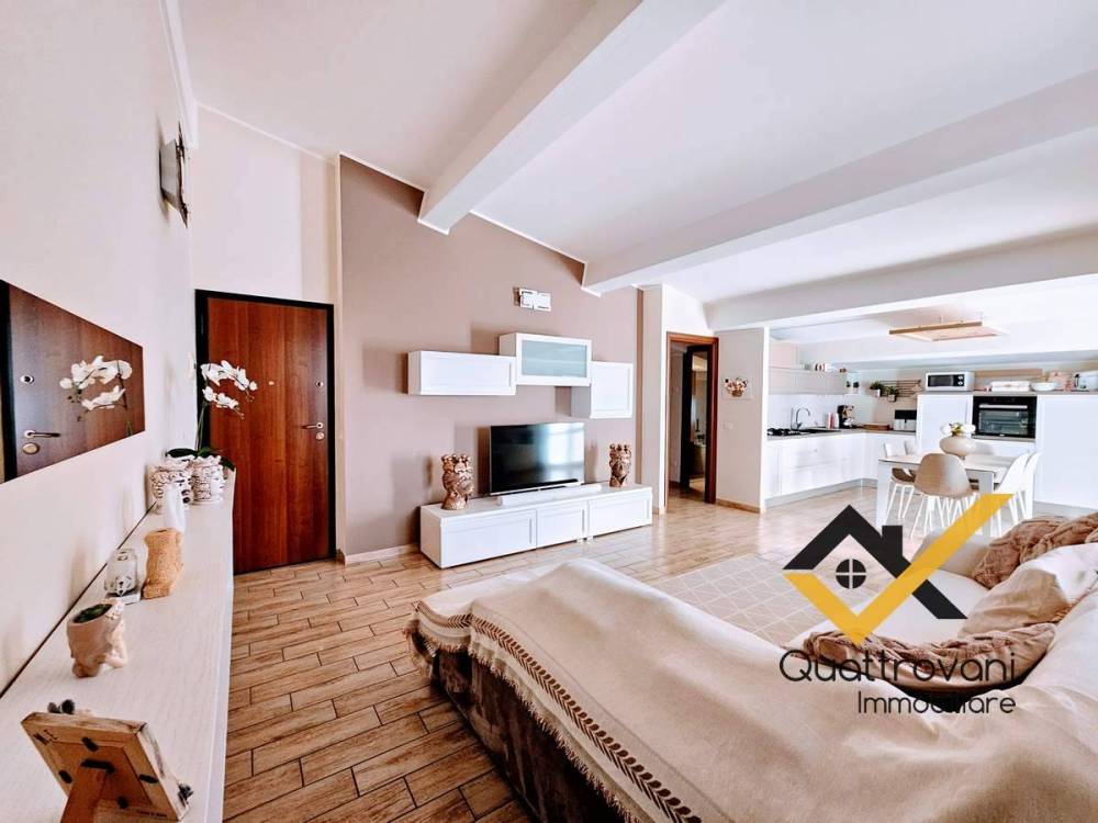ingresso su incantevole zona giorno, facilmente divisibile grazie alla doppia apertura, impreziosita da una confortevole cucina a vista, piccolo corridoio disimpegna la zona notte, composta da N° 2 camere matrimoniali, bagno principale con vasca, secondo servizio con doccia, caratterizzato da funzionale angolo lavanderia.