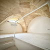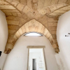 Varcando lingresso, ci si trova in un ampio living dominato da un camino antico, un elemento che non si può imitare e che da solo definisce il carattere della casa. Le volte a stella e a botte, alcune stonacate con la tipica pietra a vista, si alternano nei vari ambienti dando quella sensazione immediata di pregio. Il pavimento in microcemento crea un contrasto elegante tra tradizione e contemporaneità, rendendo gli spazi puliti, essenziali, senza perdere calore.