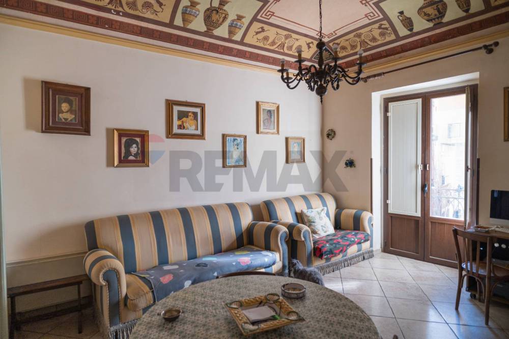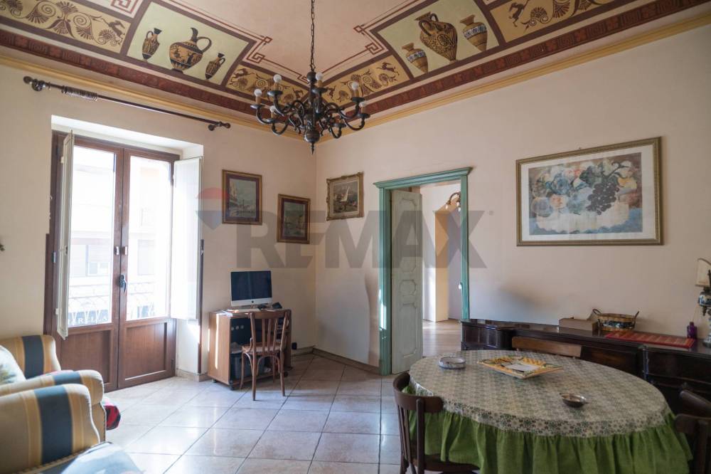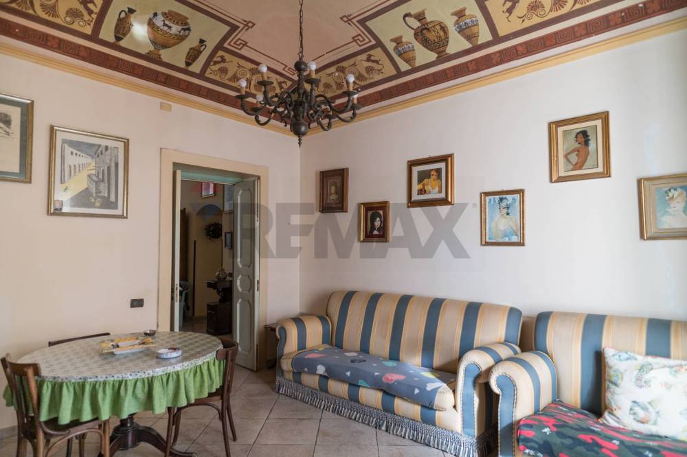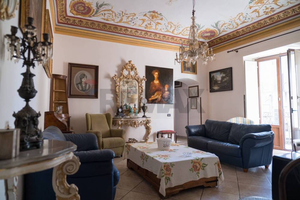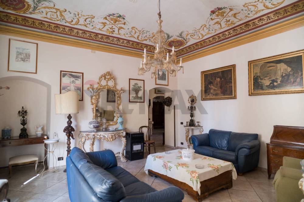 Dal piano terra la scala in marmo di pregevole fattura, rappresenta un elemento architettonico di grande prestigio e valorizza l'ingresso all'abitazione padronale al primo piano, accolti da un ingresso ampio ed elegante che conduce a cinque grandi vani, tutti luminosi e con affaccio diretto sulla via, ambienti che invitano a immaginare salotti daltri tempi, colmi di luce e di vita.