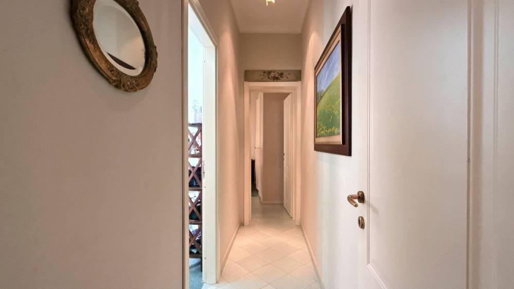 L'appartamento si apre sull' ampio soggiorno con balcone a petto su un cortile interno, a seguire vi è un ampia sala da pranzo con balcone su via Piave e la cucina abitabile con penisola, anch'essa con balcone su via Piave. A sinistra lungo il corridoio troviamo il bagno con vasca finestrato e due camere da letto matrimoniali.