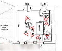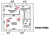 L'abitazione è composta da: piano terra cucina, bagno e scala di collegamento al piano primo. Piano primo disimpegno, camera con ripostiglio.