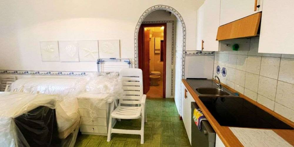 L'immobile si trova all'interno del Residence Copacabana e occupa il piano terra. Internamente, è composto da una zona giorno con angolo cottura, una camera da letto, un bagno e un terrazzino con vista sul mare. Dispone un posto auto assegnato.