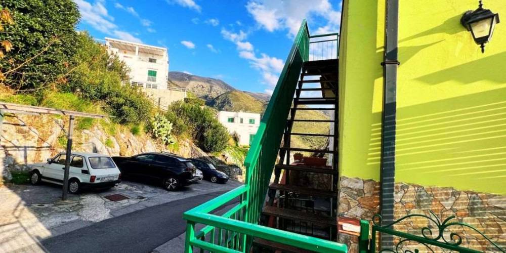 Al piano d'ingresso, troviamo un luminoso soggiorno con angolo cottura, un ambiente accogliente e perfetto per vivere la zona giorno in piena comodità. Da qui si accede a un ampio terrazzo di oltre 20 mq, con una vista panoramica sul paesaggio circostante, che permette di godere della bellezza del mare e delle montagne, creando l'atmosfera ideale per rilassarsi o intrattenere gli ospiti all'aperto.