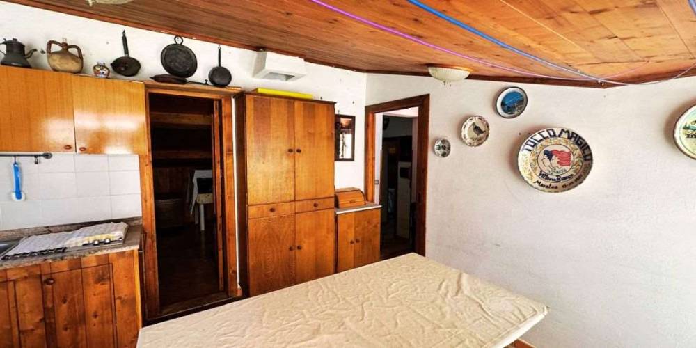 Al primo piano: salone con angolo cottura, una camera da letto e un bagno