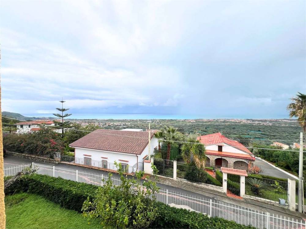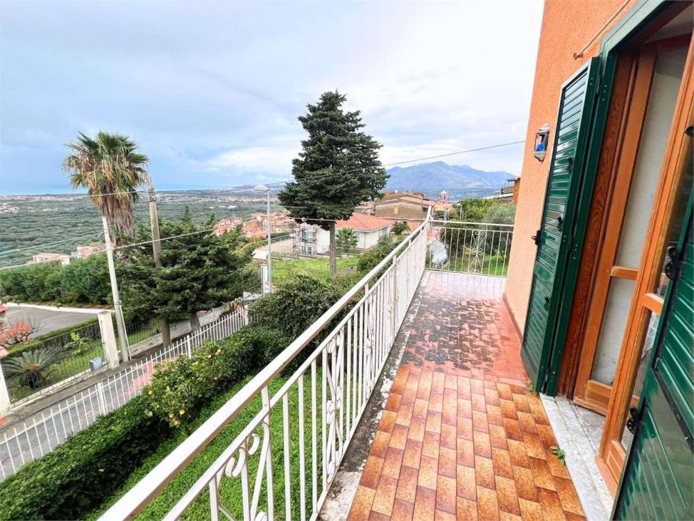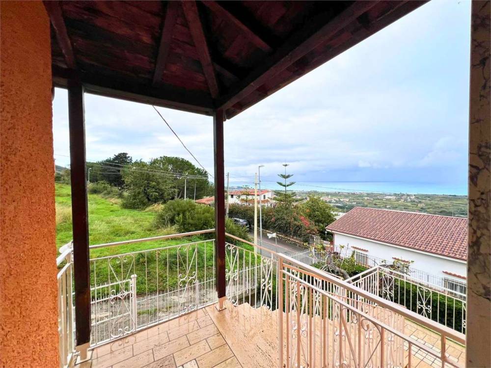 Attraverso una scala esterna si accede al primo piano, anch'esso di circa 100 mq, composto da un comodo ingresso, un luminoso soggiorno con balcone angolare dal quale si puó ammirare una splendida vista sul mare e sulle montagne circostanti, cucina abitabile con finestra panoramica, camera matrimoniale e bagno. Dal soggiorno, una scala in legno conduce al livello superiore.