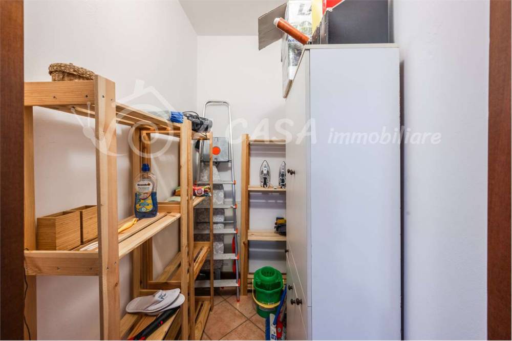 L'immobile si apre su un ingresso che conduce a un luminoso soggiorno con cucina a vista, organizzati in un unico ambiente funzionale e dotati di balconcino. Un piccolo disimpegno separa con discrezione la zona notte, che ospita due camere da letto ben proporzionate, un bagno completo di box doccia e un pratico ripostiglio, perfetto come spazio di servizio.
