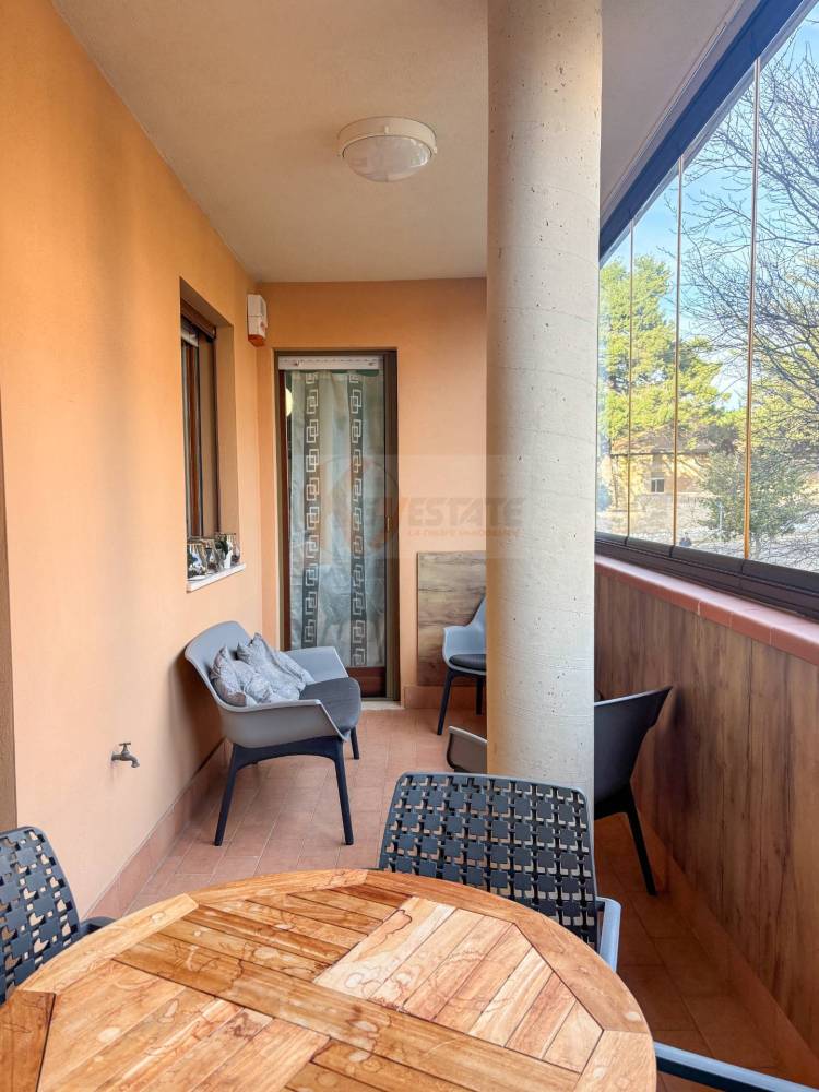 Lingresso ti accoglie direttamente nella sala ampia e luminosa, uno spazio che invita a rallentare e a sentirti subito a casa. Da qui accedi al terrazzo vivibile, chiuso con vetrate retraibili, ideale da vivere tutto lanno, ascoltando il silenzio del quartiere o lasciando entrare laria nelle giornate più calde.