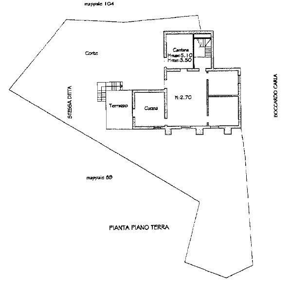 Casa unifamiliare indipendente ubicata a Campomorone (GE), Via Sotto la Chiesa 6, disposta su tre piani con corte esterna carrabile al piano seminterrato.