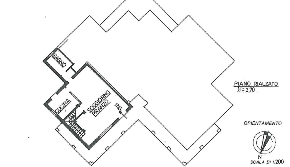 Al piano rialzato, si accede tramite un ampio vano adibito a ingresso, che porta direttamente alla sala da pranzo e al soggiorno, dove si trova una scala parzialmente a giorno che collega questo piano al seminterrato e al piano primo. Sempre al piano rialzato, sono presenti una cucina abitabile e un bagno, completo di relativo antibagno.