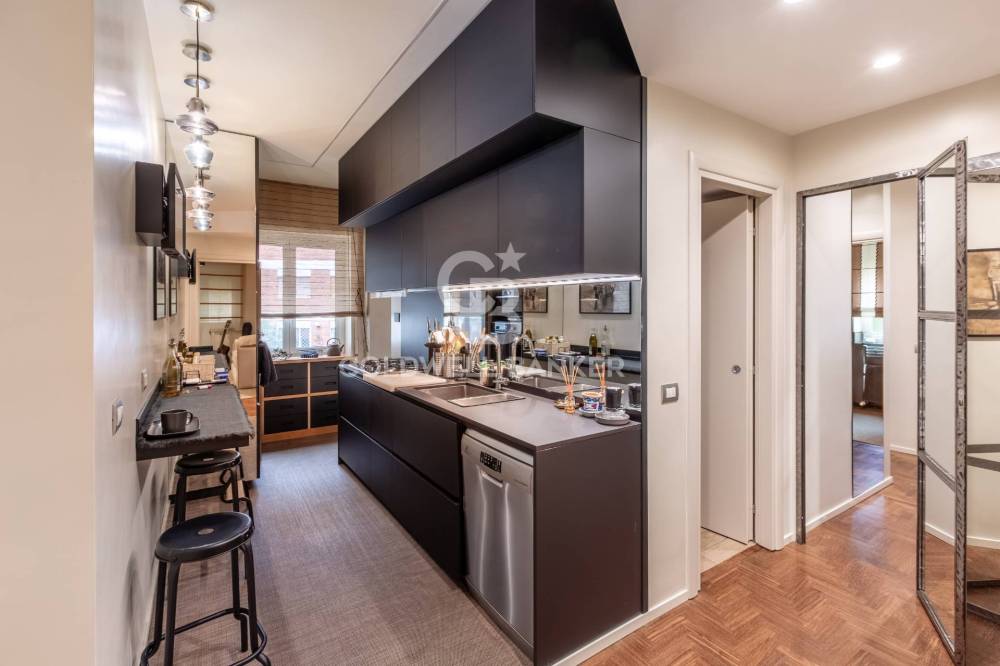 A completare la zona giorno, accogliente e raffinata, un bagno ospiti che permette cosi di separare perfettamente le due anime della casa. Varcando una maestosa porta specchiata e dal design esclusivo, si accede alla parte più intima dellappartamento dove troviamo la suite, composta da una camera da letto di grande raffinatezza, un bagno ed una camera armadio, che volendo potrebbe essere trasformata nella terza camera da letto.