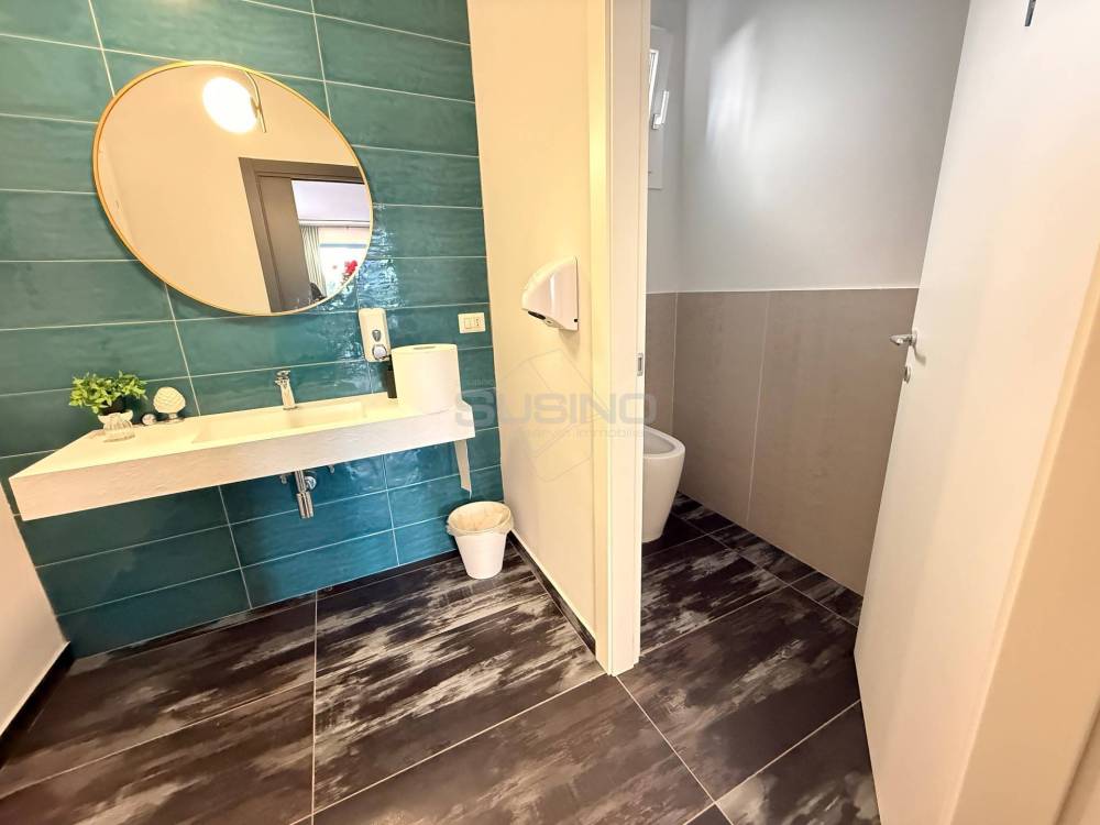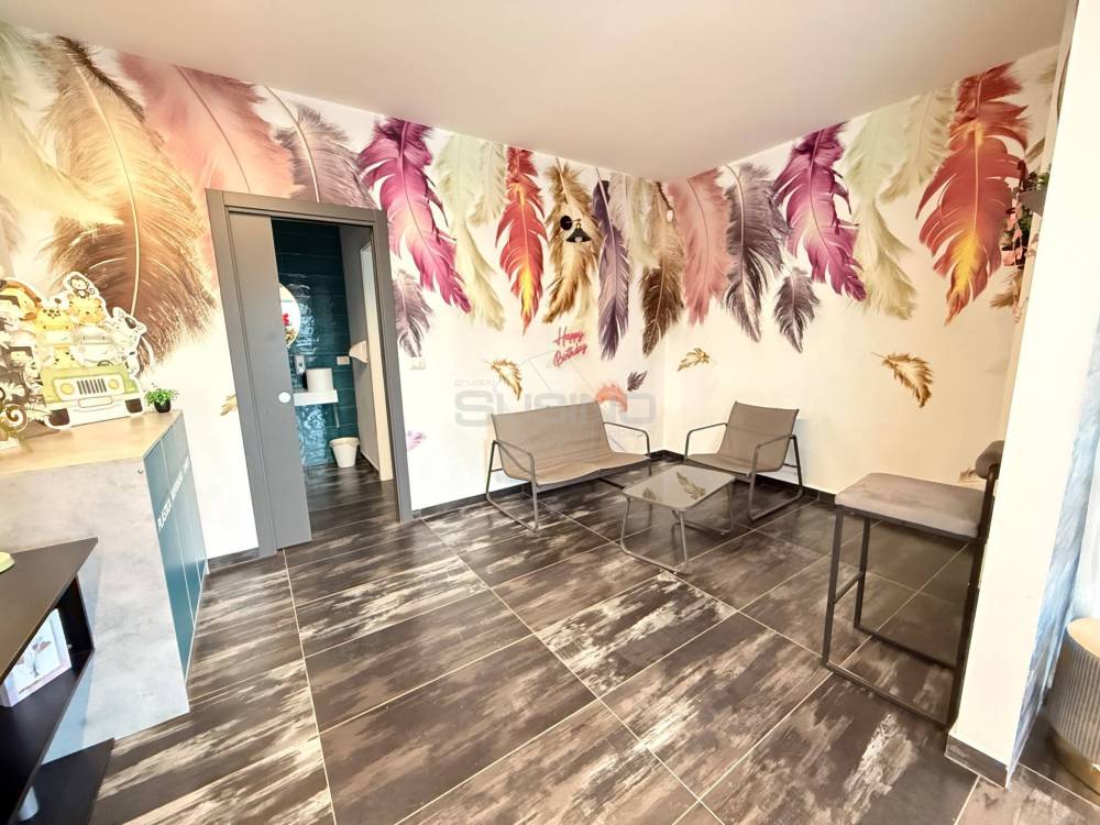 Linterno del locale presenta un ampio ambiente dingresso, unarea tecnica adiacente e i locali servizi.