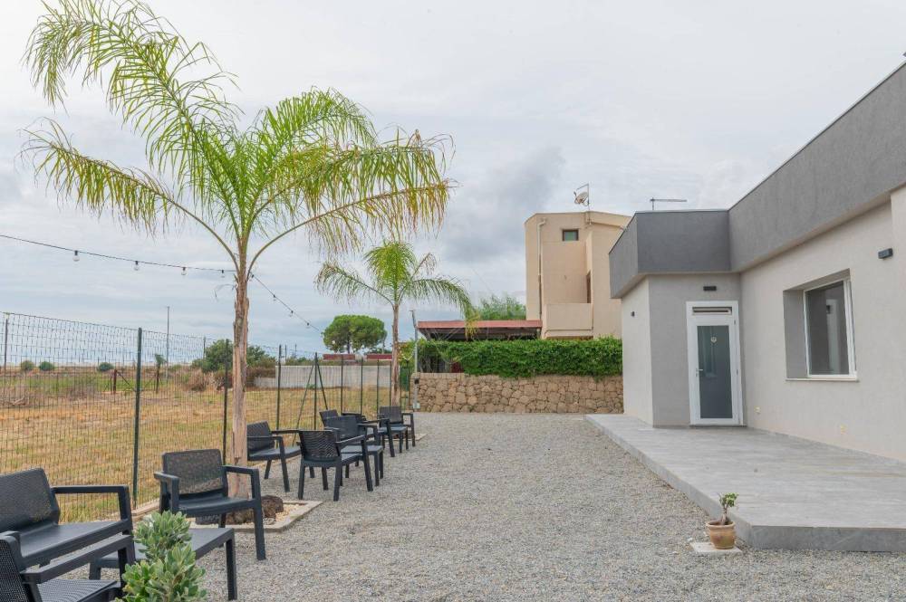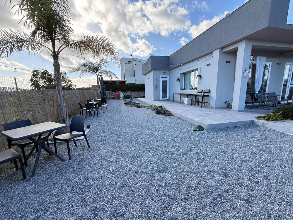 Larea recintata, di circa 700 metri quadrati, si sviluppa lungo i quattro lati del locale, con possibilità di realizzare una piscina di mq 40 circa (in progetto approvato)