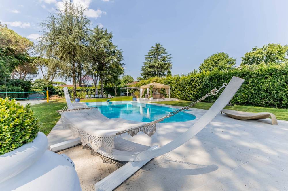 L'esterno è un vero e proprio parco privato di 6.000 metri quadrati, un invito al relax e all'attività sportiva. Qui troviamo un campo da beach volley in sabbia, una seconda piscina all'aperto, uno spogliatoio , una cucina esterna e un'ampia zona relax attrezzata, ideale per pranzi e cene conviviali en plein air.