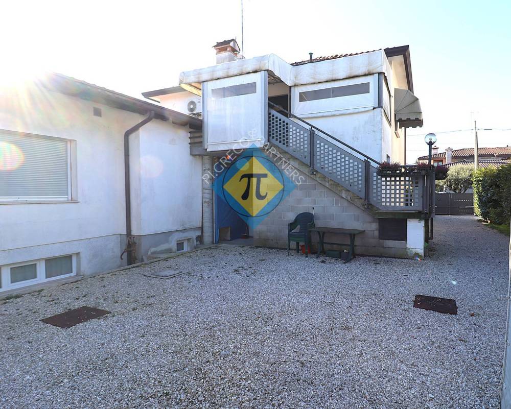 Al primo piano di una curata palazzina bifamigliare orizzontale, in tranquilla strada interna rispetto la via principale, proponiamo spazioso appartamento con entrata pedonale e carrabile indipendente e con ampio scoperto di proprietà. Ci accoglie una veranda coperta di ingresso dove, nella bella stagione, si può allestire una comoda zona pranzo allaperto; linterno dellappartamento è costituito da corridoio dentrata, soggiorno-pranzo con affaccio sulla cucina abitabile completamente arredata, ampia terrazza con vista aperta sulle montagne e dotata di capottine in tutte le finestre, disimpegno da cui con scala retrattile si raggiunge la soffitta utilissima per lo stoccaggio, due camere, uno studio ed un bel bagno con doccia idromassaggio; al piano terra è stato ricavato un ulteriore utile locale di servizio. Per quanto riguarda le finiture e gli impianti limmobile è stato oggetto di recente ristrutturazione e le manutenzioni sono state continue. Il punto di forza di questa proposta è sicuramente sia nella luminosità degli ambienti poiché limmobile riceve luce naturale su tutti e quattro i lati, sia nelle pertinenze esterne di giardino, veranda e terrazza che permette di vivere pienamente gli spazi aperti sia nella stagione calda sia in quella fredda e piovosa. Anche la posizione è strategica perché è la zona è residenziale e tranquilla ma dotata di tutti i servizi ed è comodissima al centro di Pordenone. Che aspettate quindi, contattateci per una visita, per accertarvi di persona della opportunità. Inoltre il team dello Studio Immobiliare PI.GRECO è disponibile alla valutazione gratuita dei vostri immobili. Chiamateci per un sopralluogo ed una veloce e felice conclusione della trattativa. Studio Immobiliare PI.GRECO un servizio concreto.