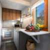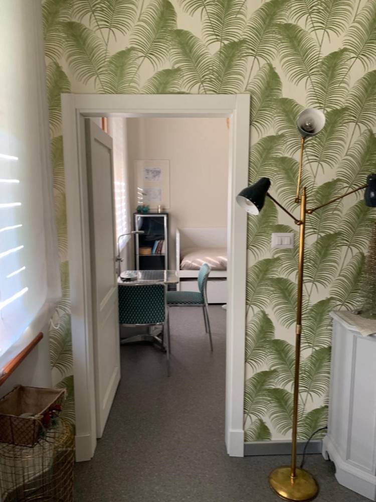 L’ingresso si trova al primo piano, dove l’immobile accoglie con una camera matrimoniale dotata di bagno privato, un vano versatile utilizzabile come zona living, e una seconda stanza ideale come studio, camera aggiuntiva o soggiorno secondario. Completa il piano un cucinotto, dal quale si accede ai livelli superiori.