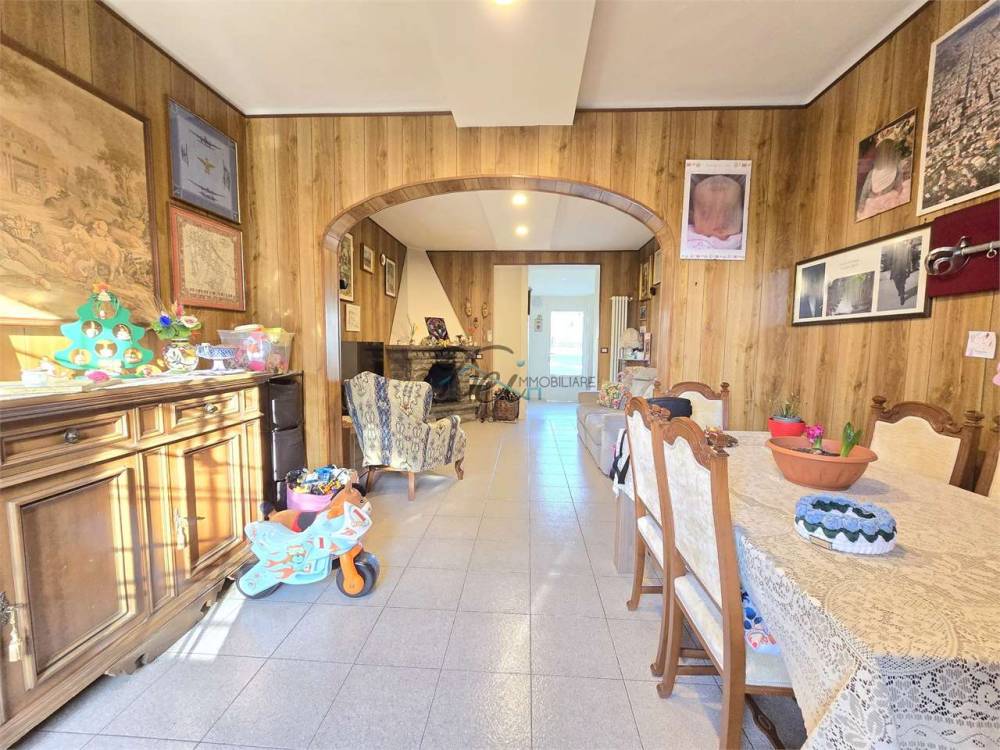 Al piano terra troviamo un ampio ingresso, un grande salone con camino, una sala da pranzo facilmente utilizzabile anche come studio o camera al piano, una cucina abitabile con accesso diretto al giardino e un bagno con doccia.