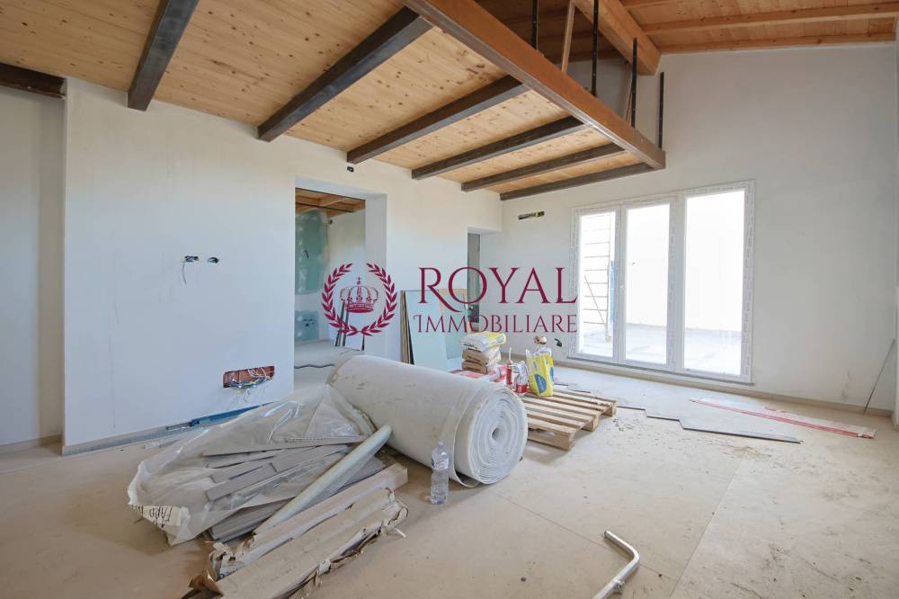 Situato al piano terra, lappartamento è così composto: ingresso in disimpegno, bagno di servizio, cucina abitabile, ampia sala con accesso al terrazzo privato di 21 mq. Zona notte soppalcata composta da una camera matrimoniale, bagno senza finestra e comodo ripostiglio.