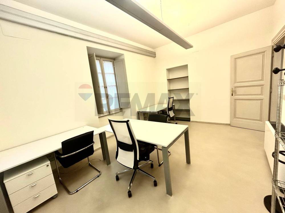 L'ufficio viene consegnato completamente arredato con mobili-archivio, scrivanie e sedie.
