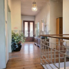 Dal piano primo si accede a un ampio disimpegno che apre su una splendida terrazza di 60 mq ricavata sopra il magazzino. Uno spazio ideale per cene allaperto o relax, che funge da ponte verso il giardino privato sul retro. La proprietà include inoltre uno scoperto cementato con due garage singoli.