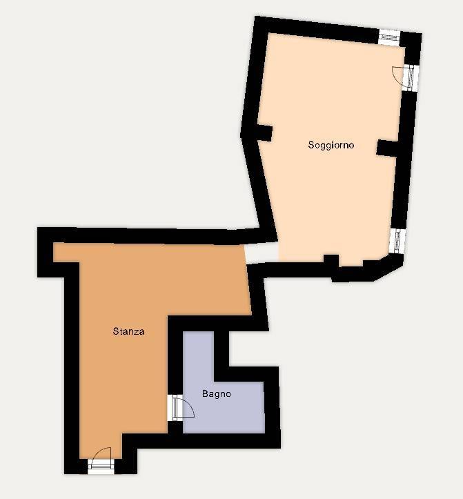 L'immobile è composto da: ingresso su ampio locale con angolo cottura a vista, corridoio, locale disimpegno provvisto di un secondo ingresso e bagno con doccia.