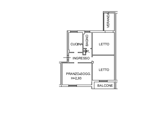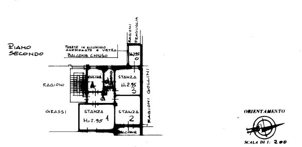 Unità al piano secondo facente parte di un più ampio edificio residenziale; si compone di ingresso-disimpegno, cucina, pranzo-soggiorno, bagno, due camere, piccolo ripostiglio, un balcone verandato posteriore e un balcone sul fronte strada, oltre alla cantina al piano terra.