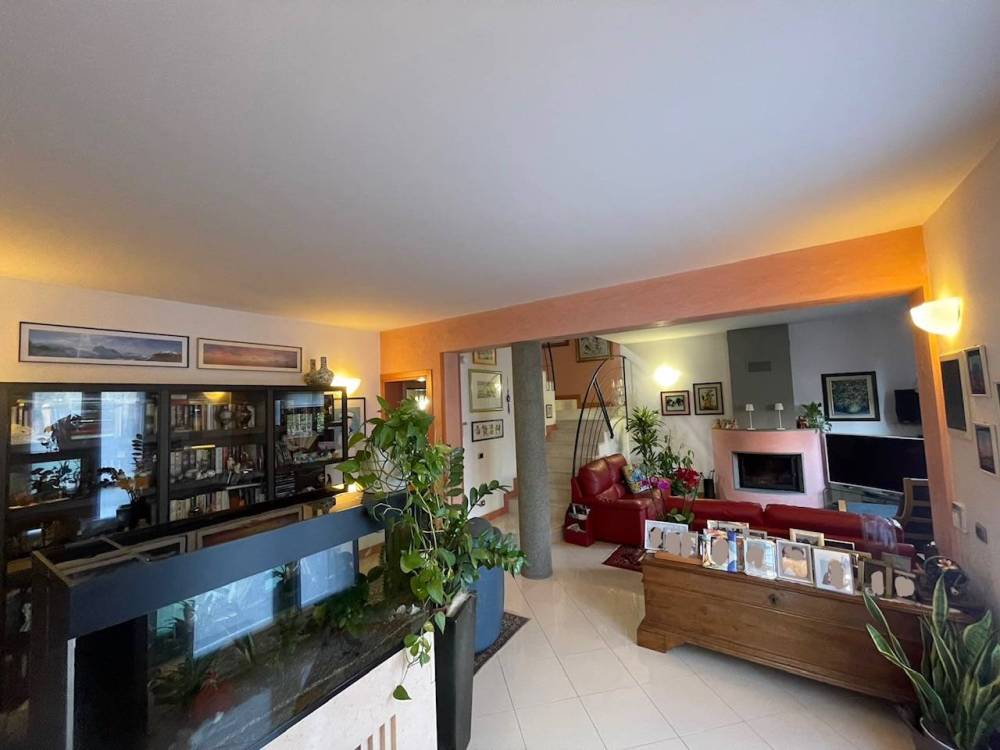 • Piano terra: ingresso indipendente, ampia sala con camino, cucina abitabile con accesso diretto a una zona esterna pavimentata attrezzata con barbecue, bagno e garage doppio di circa 50 mq, attualmente adibito a taverna con camino.
