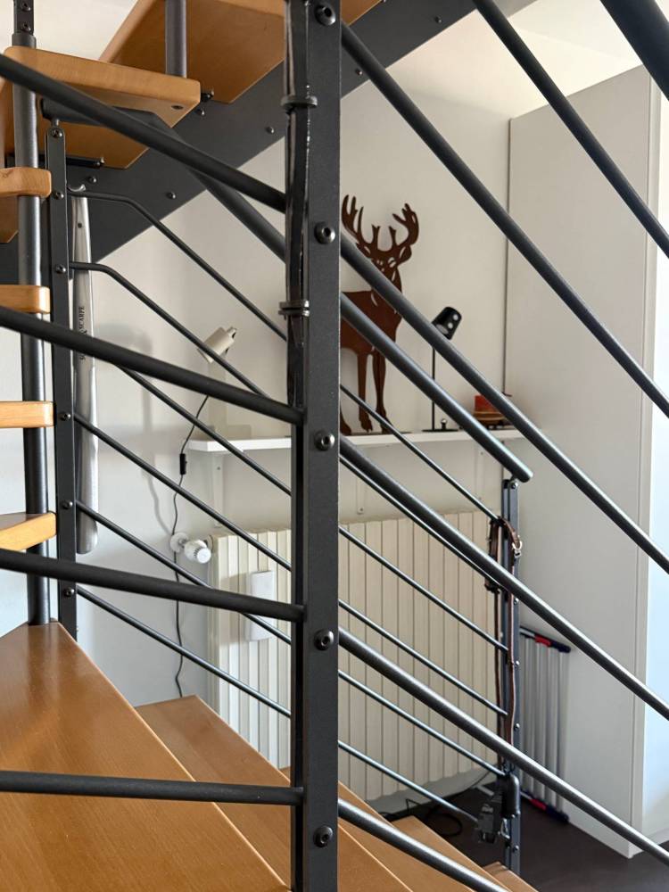 Salendo al piano mansardato, si apre una zona versatile e suggestiva che ospita uno spazio studio, una zona TV e una seconda camera da letto completa di cabina armadio, perfetta come ambiente particolarmente riservato.
