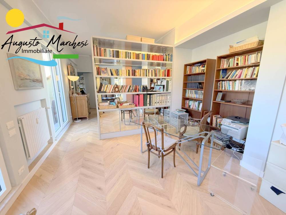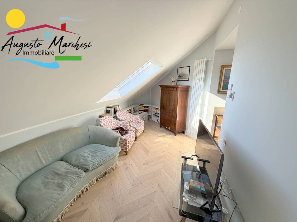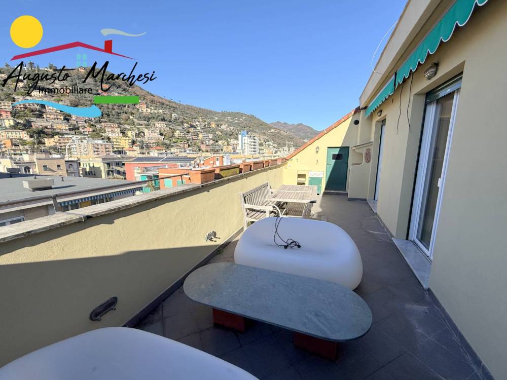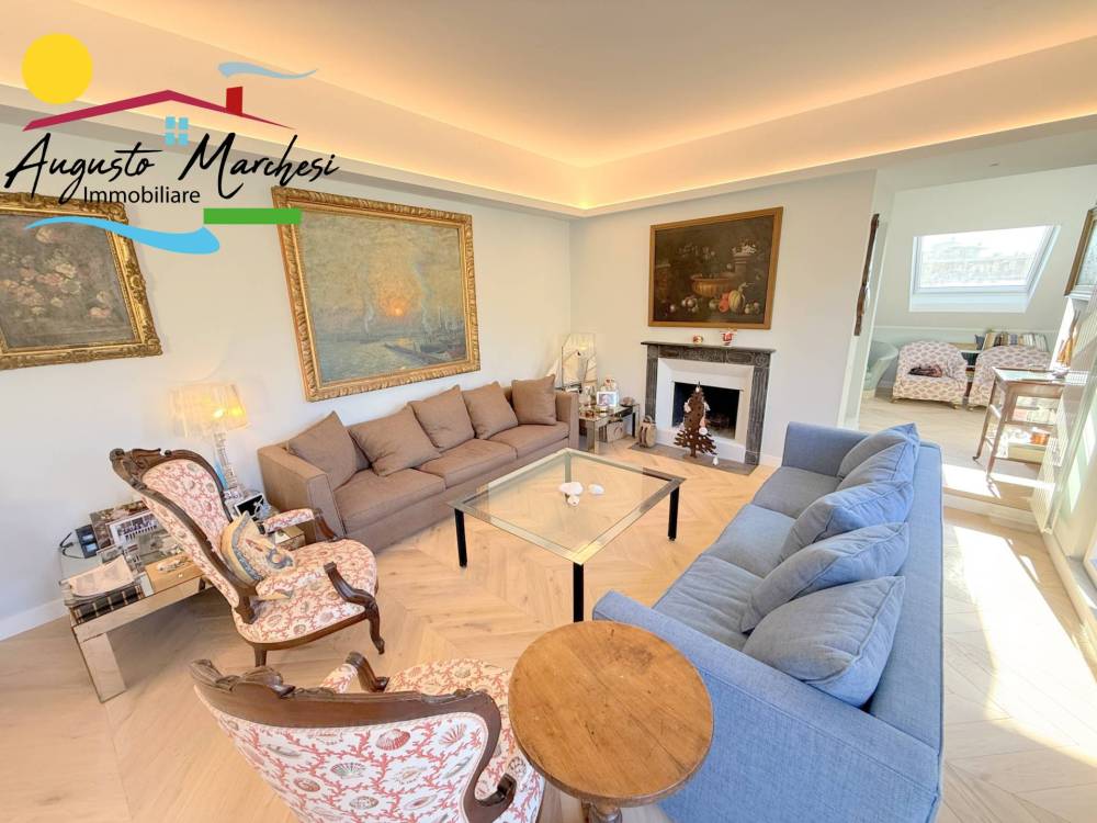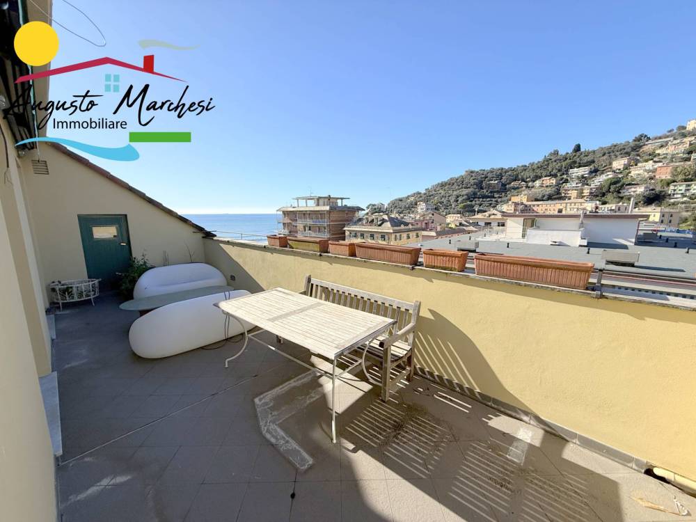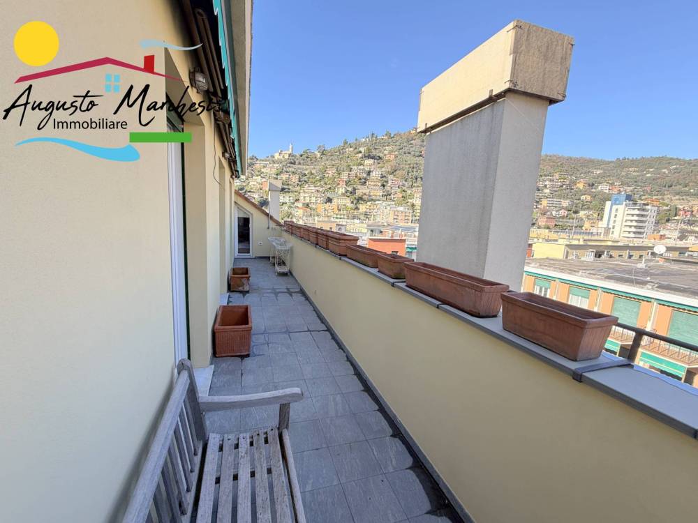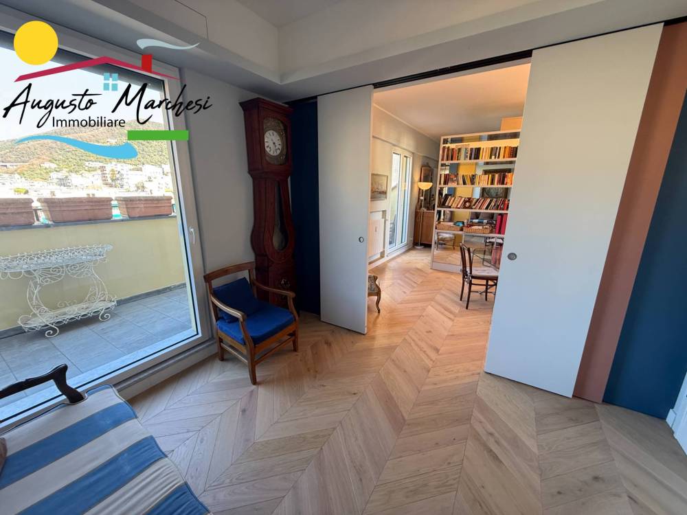 RECCO nel pieno centro della vivace località della Riviera Ligure, proponiamo in VENDITA ampio appartamento all'ultimo piano (attico). Si tratta di una spaziosa e luminosa abitazione di 180 metri quadrati circa, situata al quinto piano di un edificio dotato di ascensore. L'immobile appena ristrutturato con materiali di pregio , pronto per essere acquistato e abitato fin da subito. L'immobile è composto da un ingresso, 2 camere da letto matrimoniali con cabina armadi, due bagni, un ampio studio, una camera singola, un ampio soggiorno con cucina a vista, all'occorrenza chiudibile con porte scorrevoli di design, completa la proprietà due confortevoli terrazzi di cui uno con vista mare.