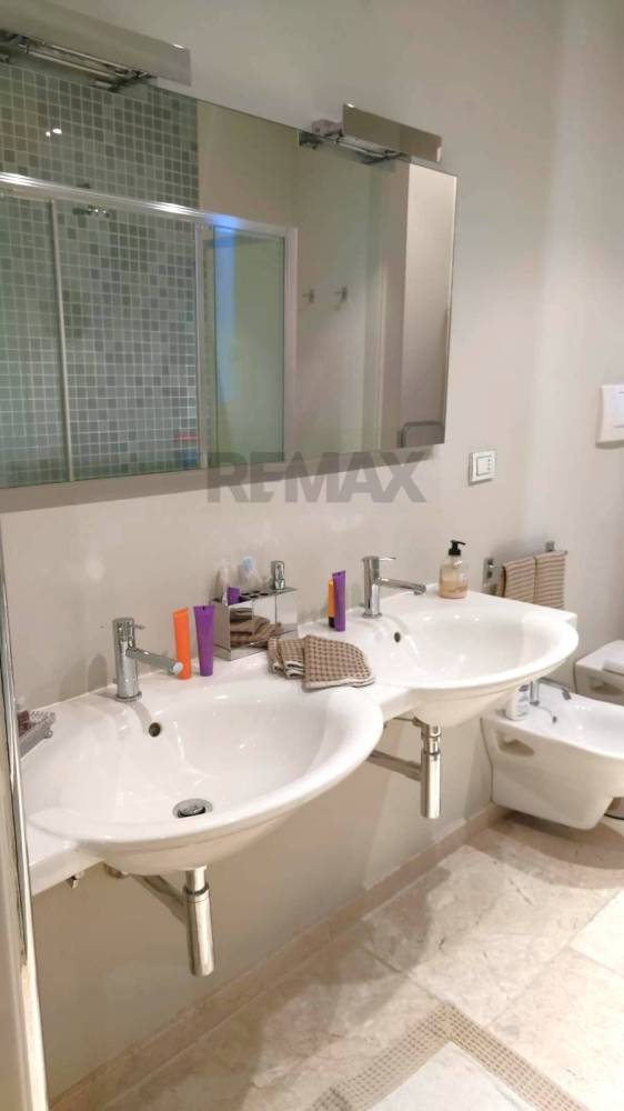Bagno rifinito con materiali di alta qualità.
