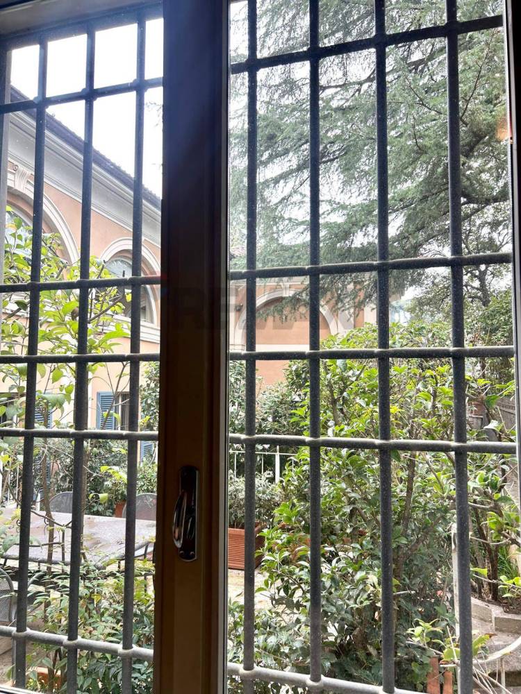 L'appartamento è al piano terra con affaccio su un giardino del palazzo attiguo, molto silenzioso e luminoso.