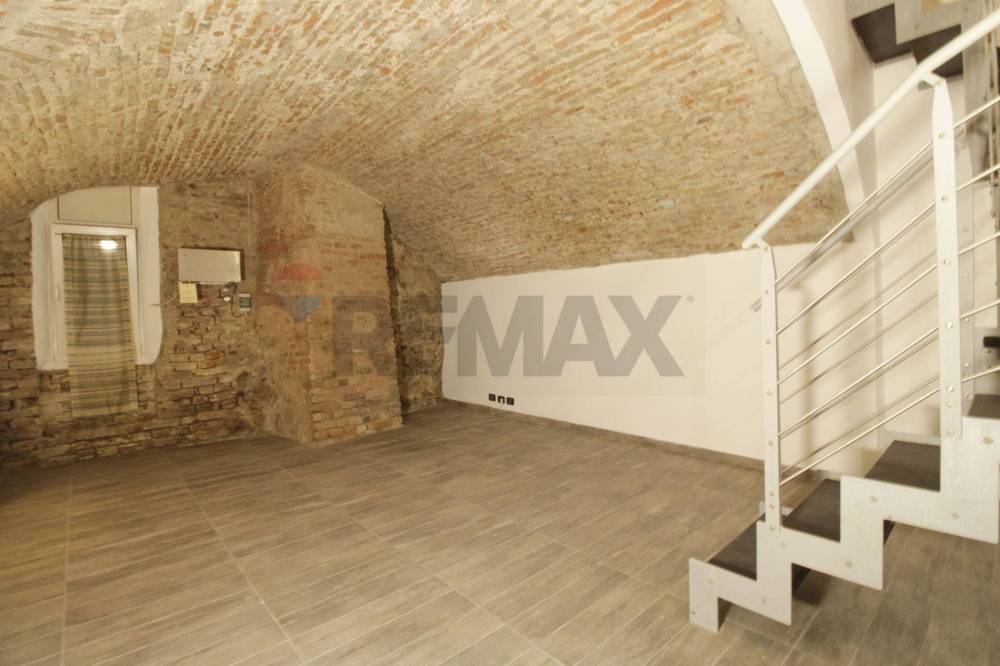 L'appartamento si sviluppa su due livelli : al piano terra troviamo l'ingresso con porta blindata da cui si accede alla sala con cucina a vista, bagno con antibagno che funge da zona lavanderia; una comoda scala ci accompagna al piano seminterrato dove è stata ricavato un secondo locale multiuso di circa 40 mq , finestrato e con un caratteristico soffitto a volte .